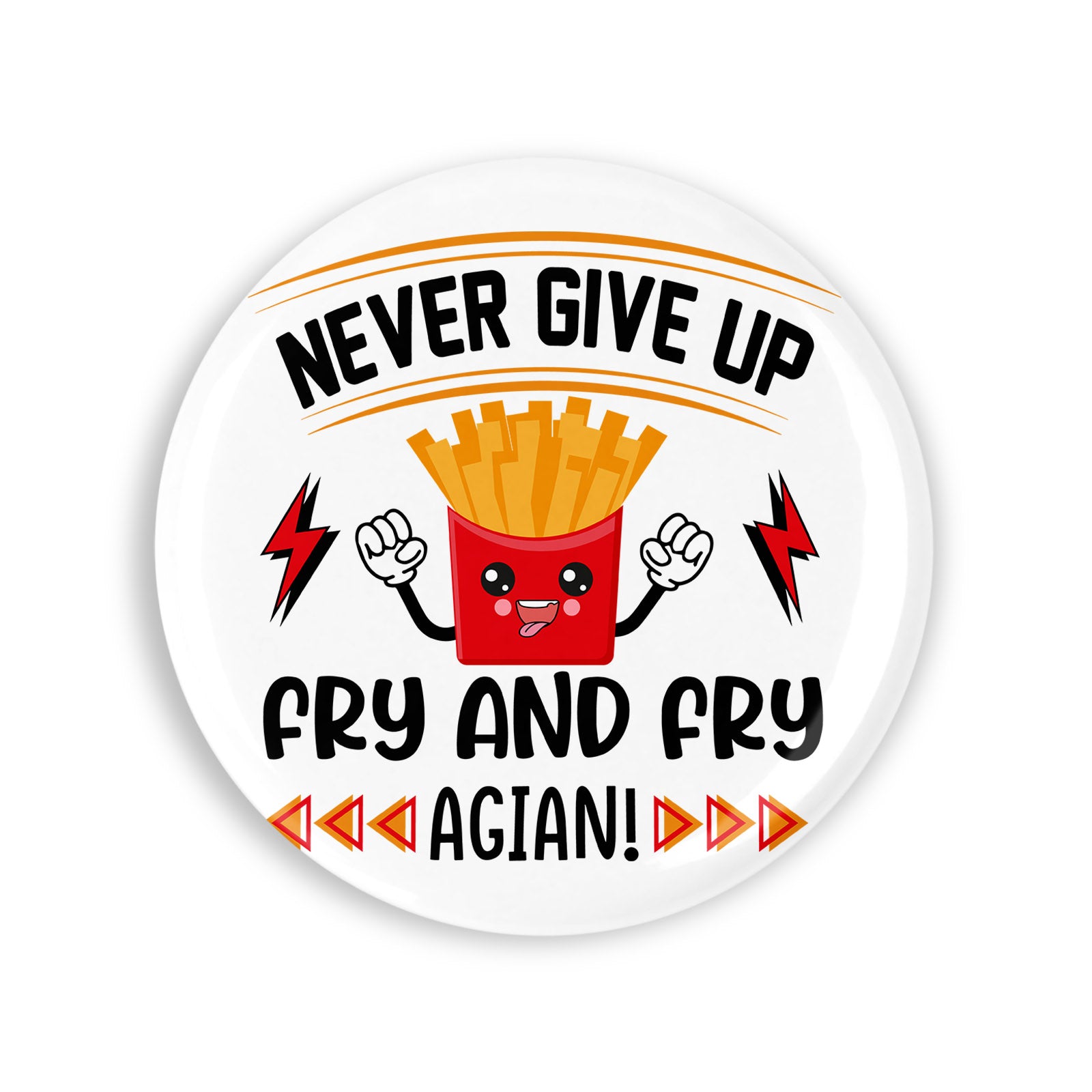 Set 4 insigne, Never give up Fry and fry again, NO4429, Metal, 44 mm, Multicolor