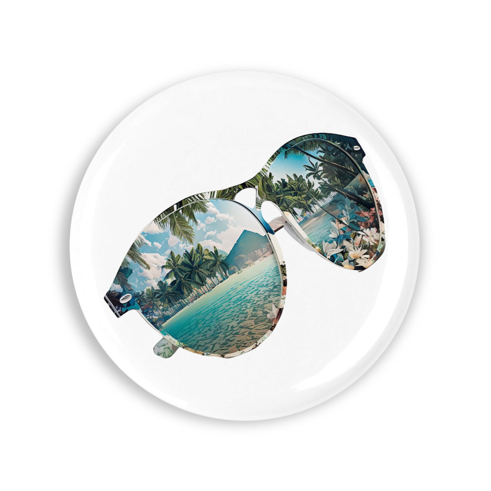 Set 4 insigne, Ochelari de soare cu peisaj exotic, NO11087, Metal, 44 mm, Multicolor