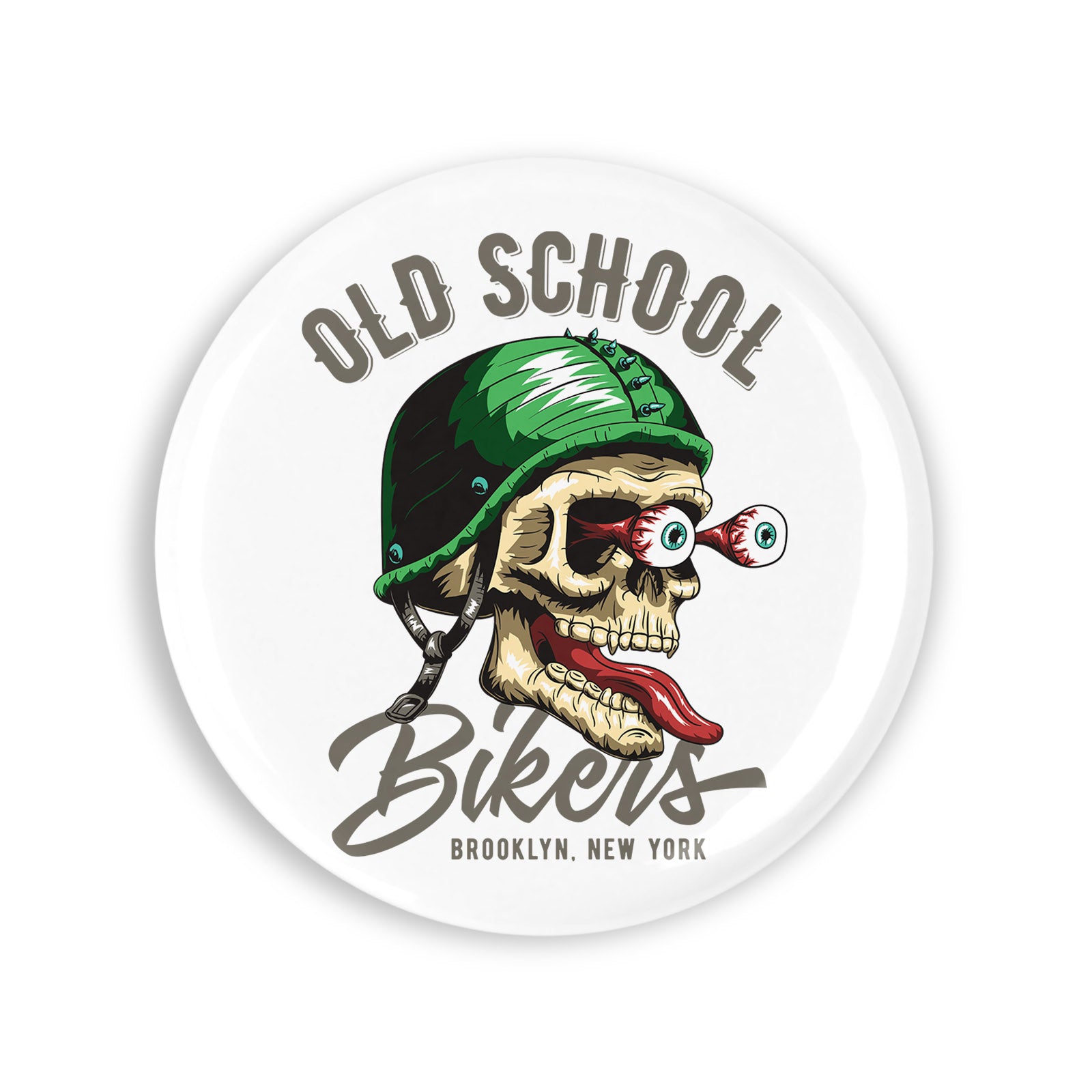Set 4 insigne, Old school bikers Brooklyn New York Craniu motociclist, NO1118, Metal, 44 mm, Multicolor
