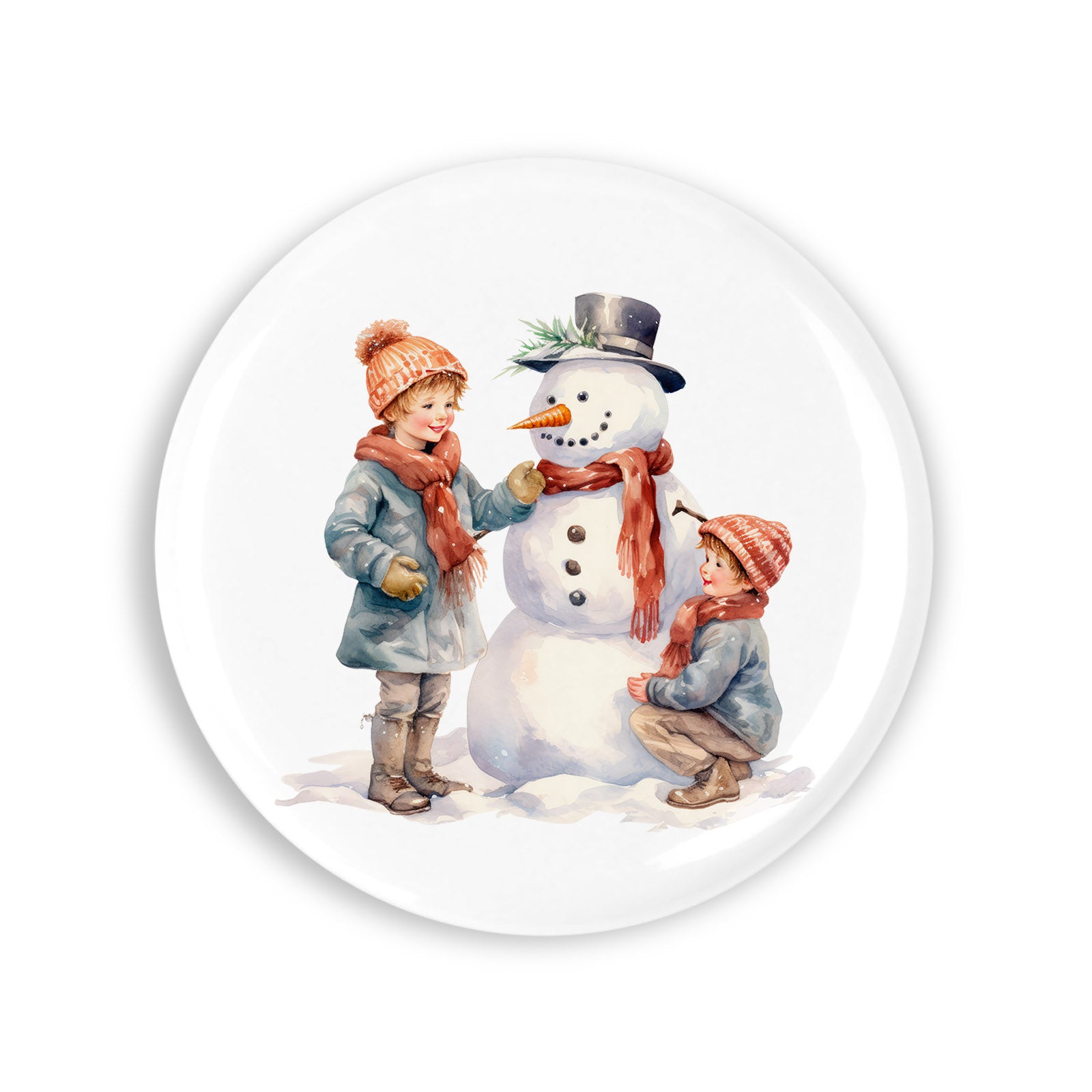 Set 4 insigne, Omul de zapada si copiii, NO3380, Metal, 44 mm, Multicolor