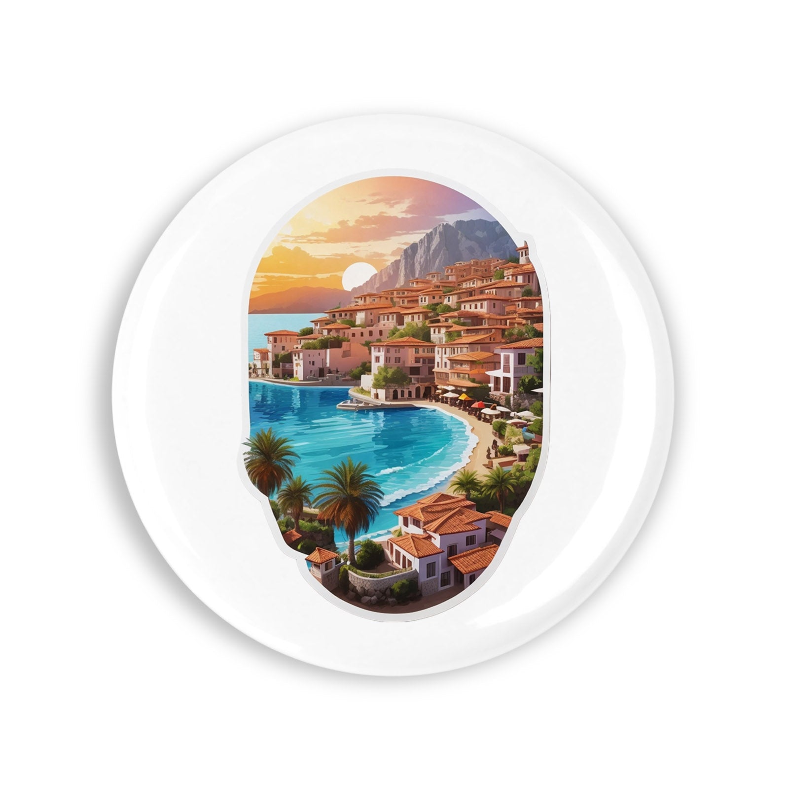 Set 4 insigne, Orasul Antalya vedere la mare, NO7656, Metal, 44 mm, Multicolor