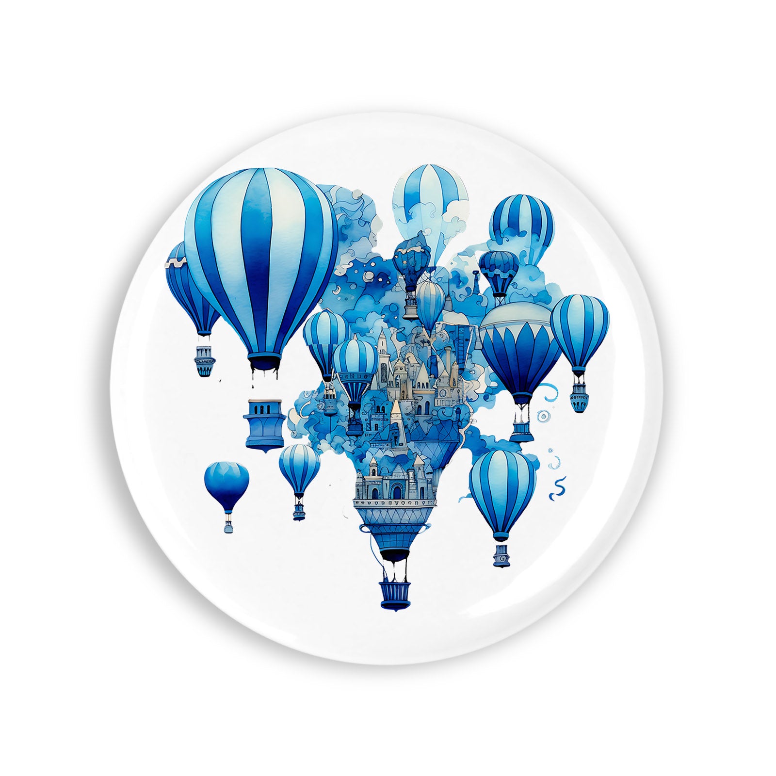 Set 4 insigne, Orasul cu baloane zburatoare, NO1769, Metal, 44 mm, Multicolor