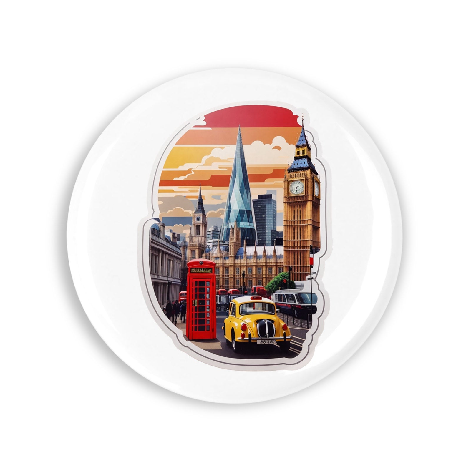 Set 4 insigne, Orasul Londra Big Ben, NO8460, Metal, 44 mm, Multicolor