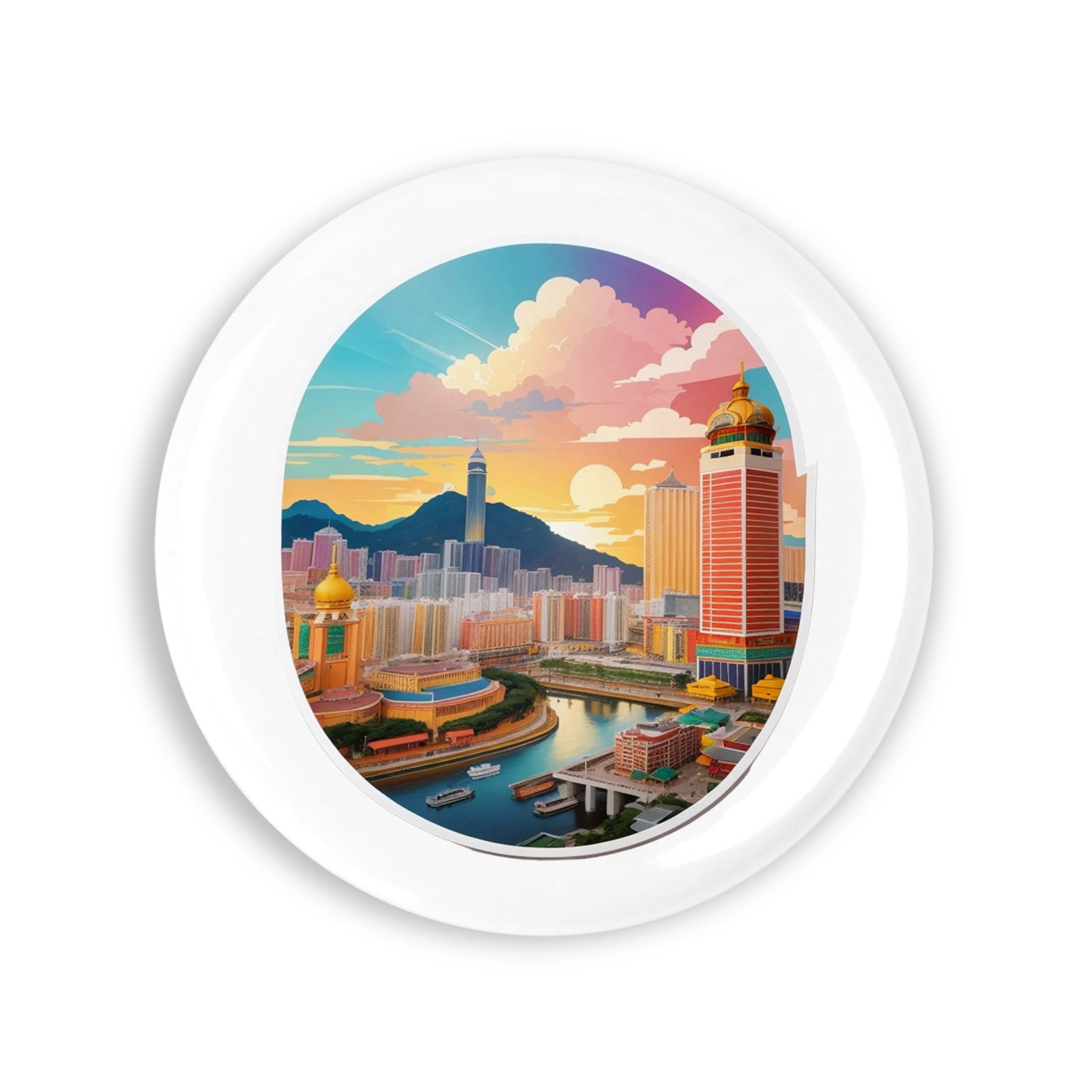 Set 4 insigne, Orasul Makao, NO8479, Metal, 44 mm, Multicolor