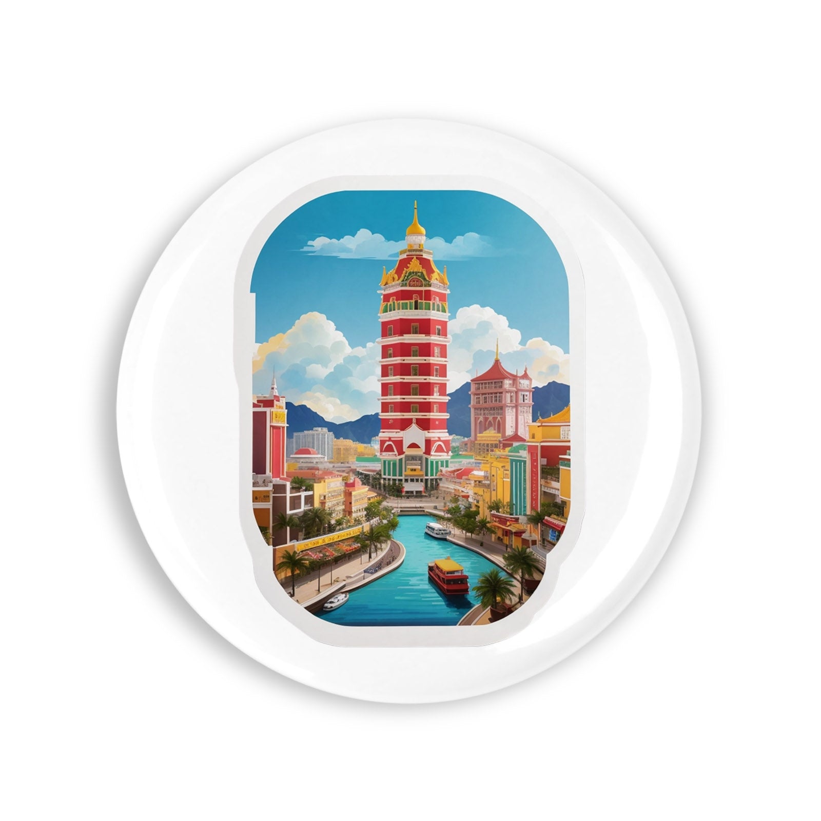 Set 4 insigne, Orasul Makao, NO8480, Metal, 44 mm, Multicolor