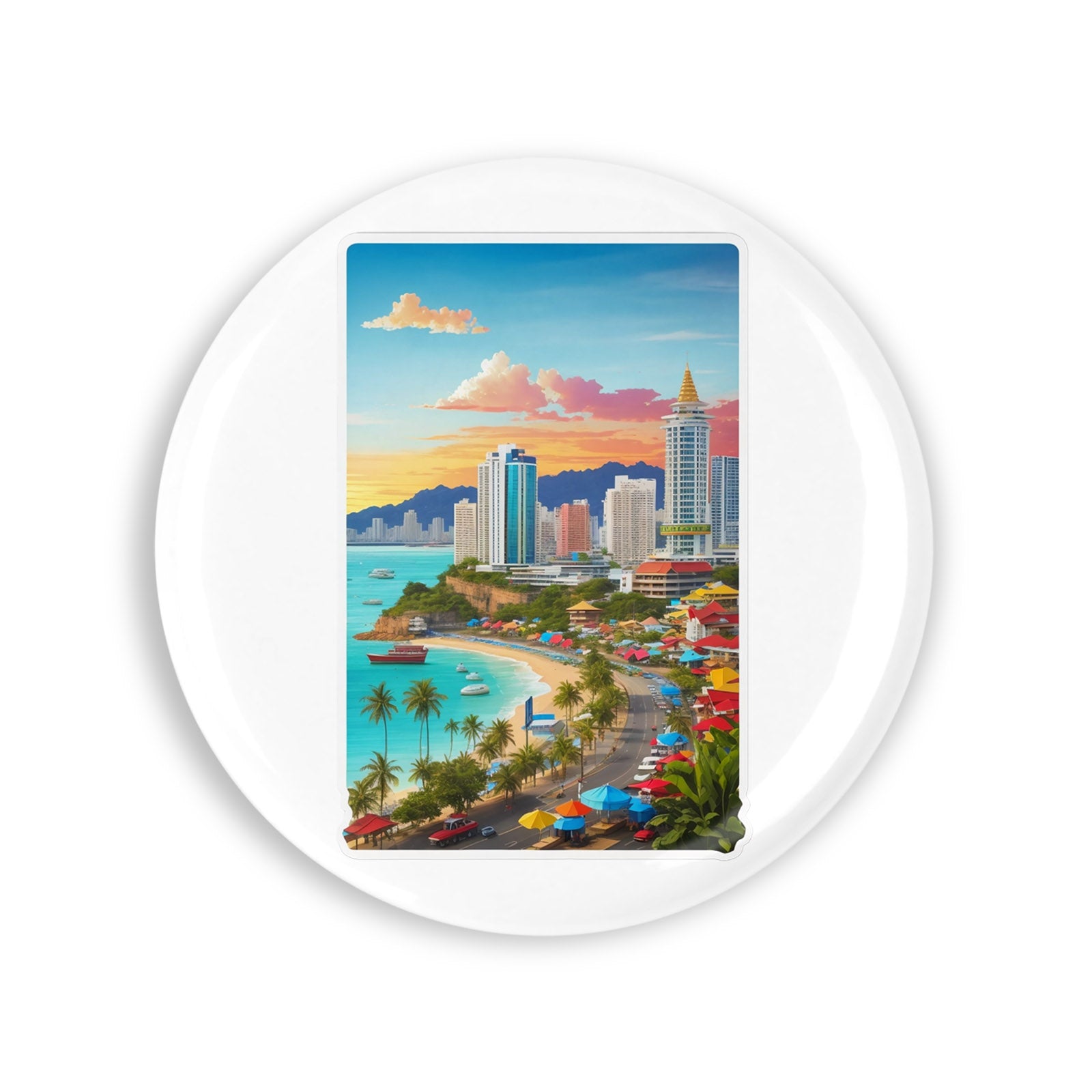 Set 4 insigne, Orasul Pattay plaja , NO8671, Metal, 44 mm, Multicolor