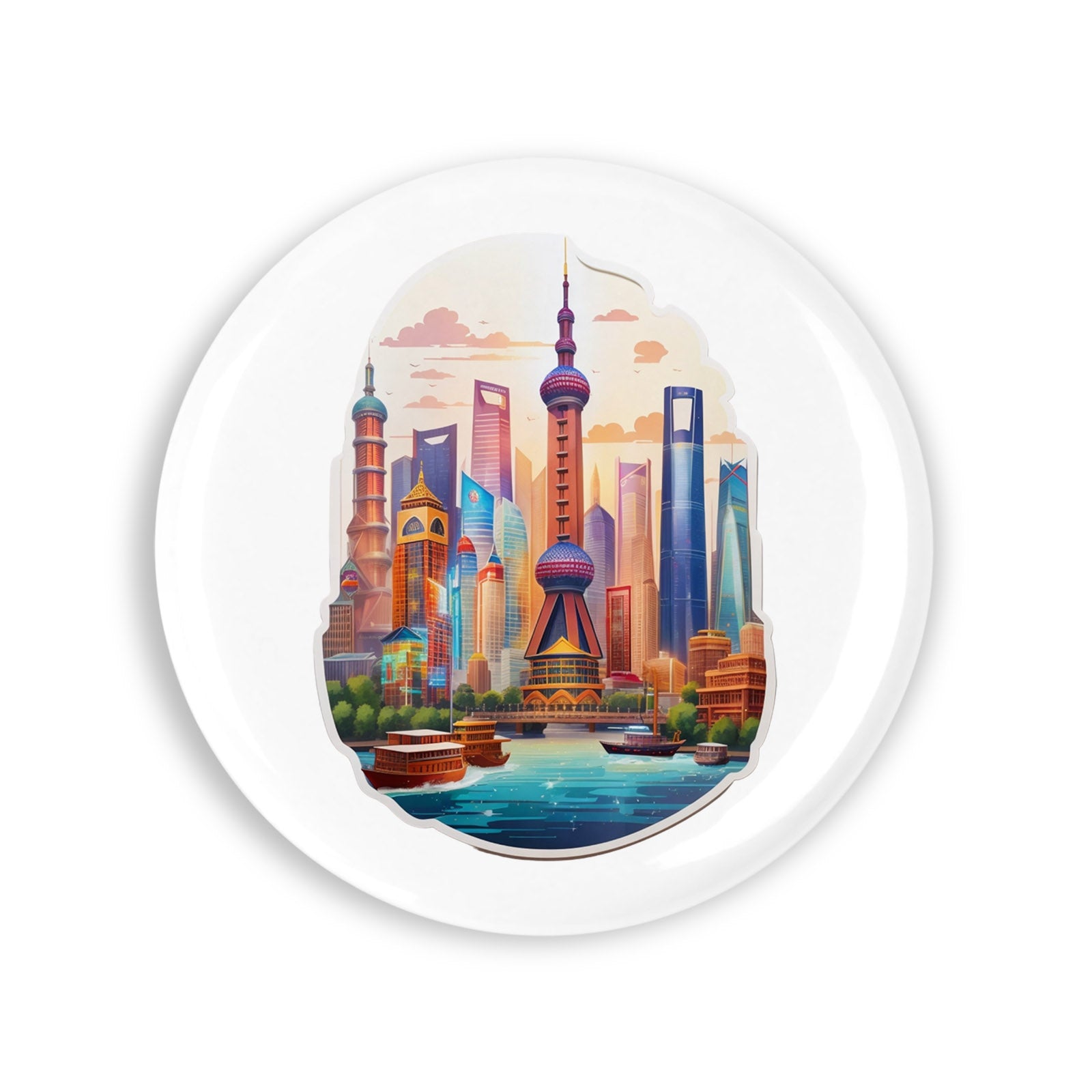Set 4 insigne, Orasul Shanghai, NO8863, Metal, 44 mm, Multicolor