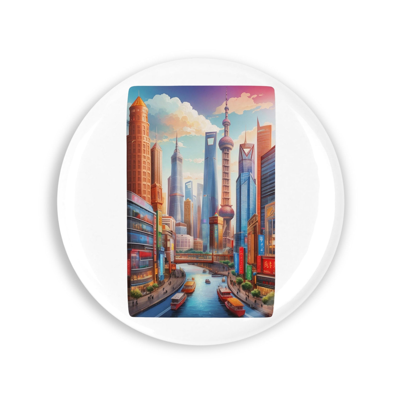 Set 4 insigne, Orasul Shanghai, NO8864, Metal, 44 mm, Multicolor