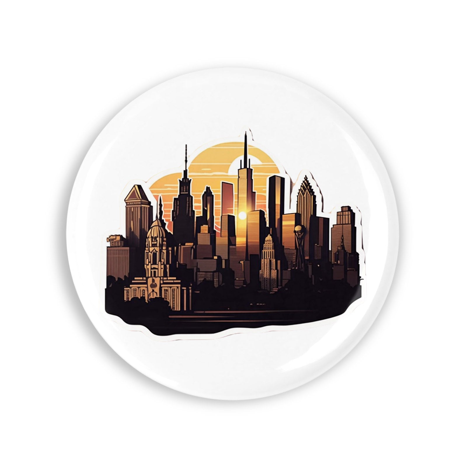 Set 4 insigne, Orizonturile orasului la apus, NO11110, Metal, 44 mm, Multicolor
