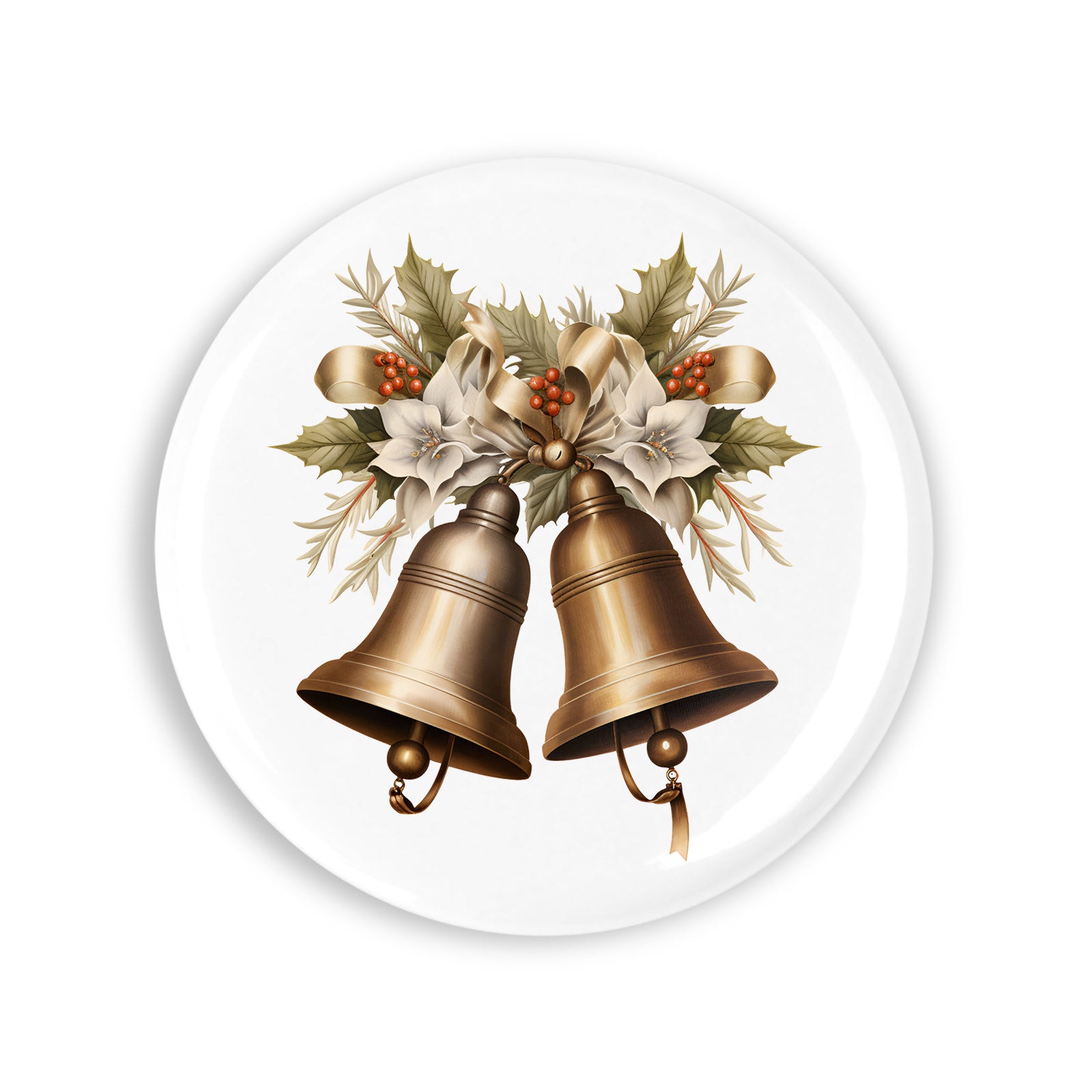 Set 4 insigne, Ornament de craciun clopotei, NO2693, Metal, 44 mm, Multicolor