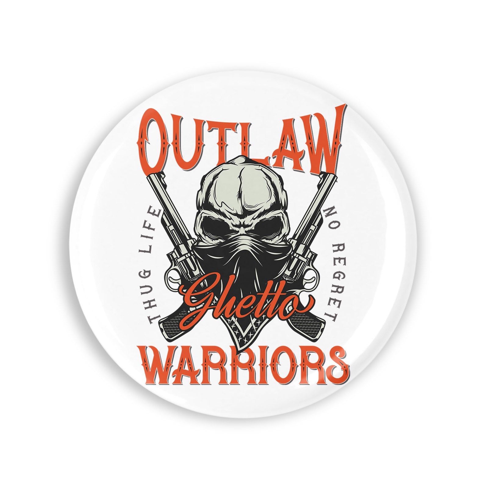 Set 4 insigne, Outlanw Ghetto Warriors Thoug life no regret Craniu cu pistoale, NO2007, Metal, 44 mm, Multicolor