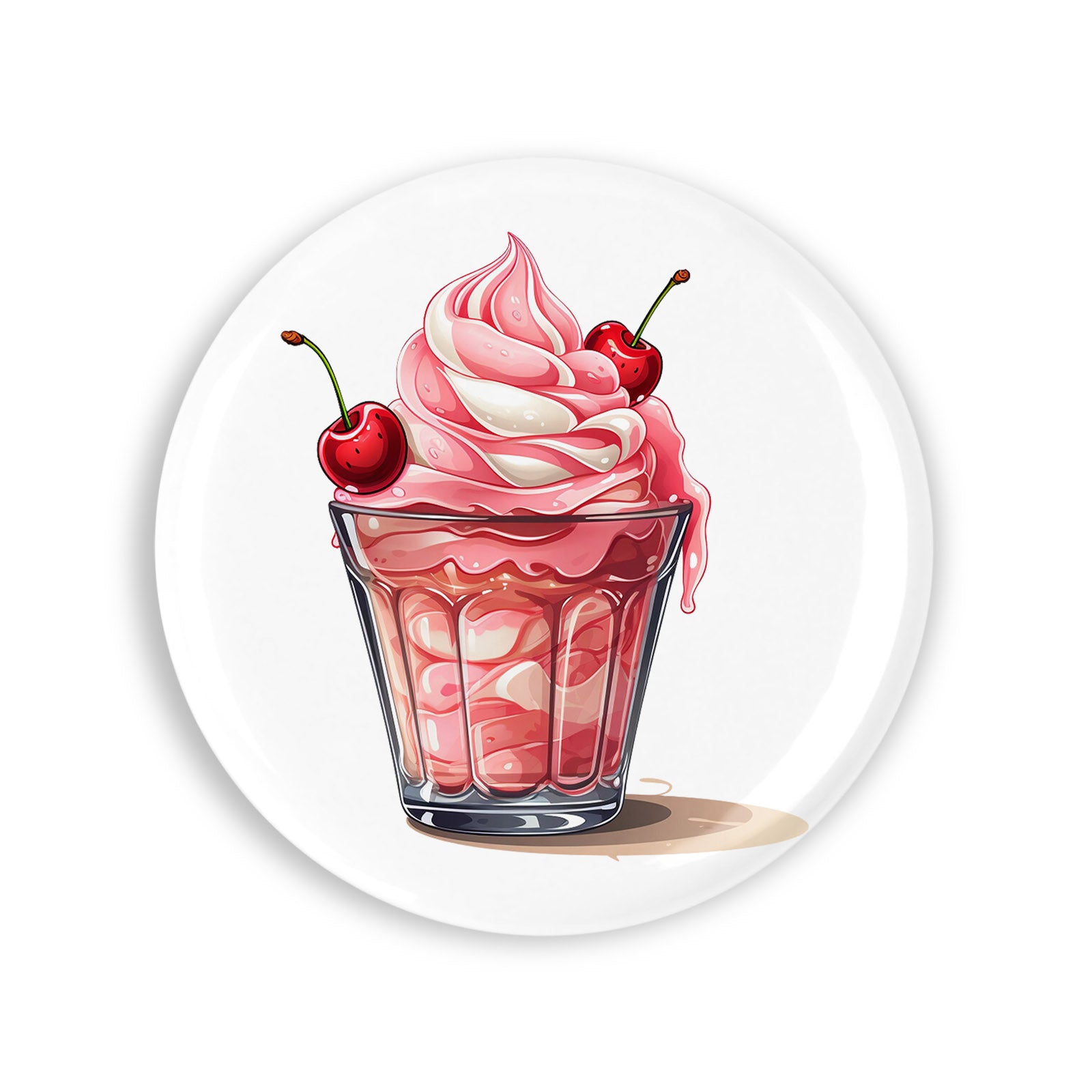 Set 4 insigne, Pahar cu inghetata de cirese, NO359, Metal, 44 mm, Multicolor