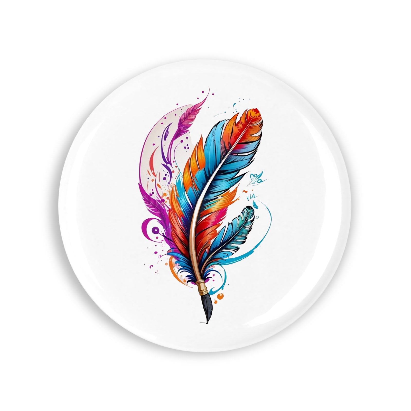 Set 4 insigne, Pana de caligrafie, NO6995, Metal, 44 mm, Multicolor