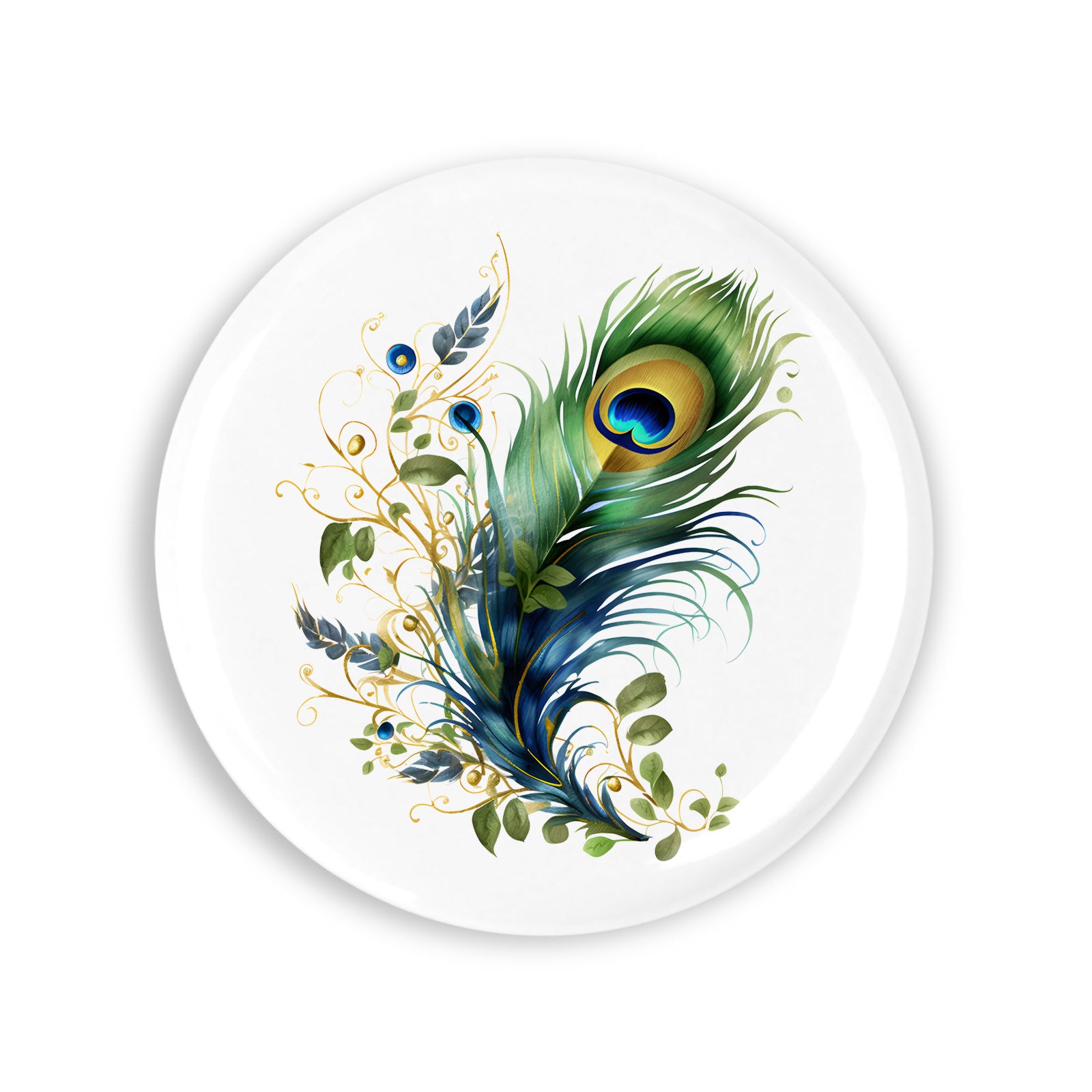 Set 4 insigne, Pana de paun Lily, NO4974, Metal, 44 mm, Multicolor