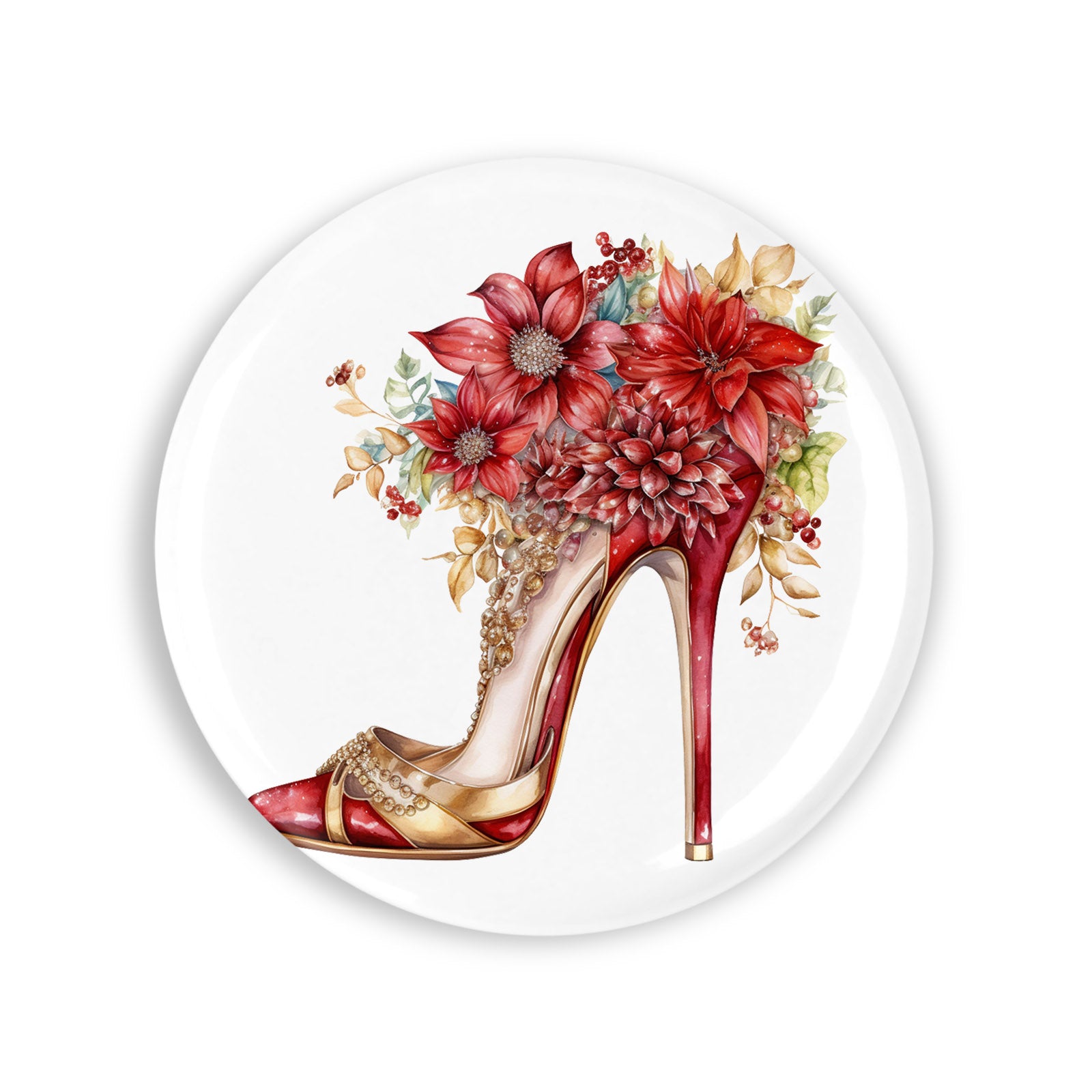 Set 4 insigne, Pantofi cu toc pentru craciun Arabela, NO854, Metal, 44 mm, Multicolor