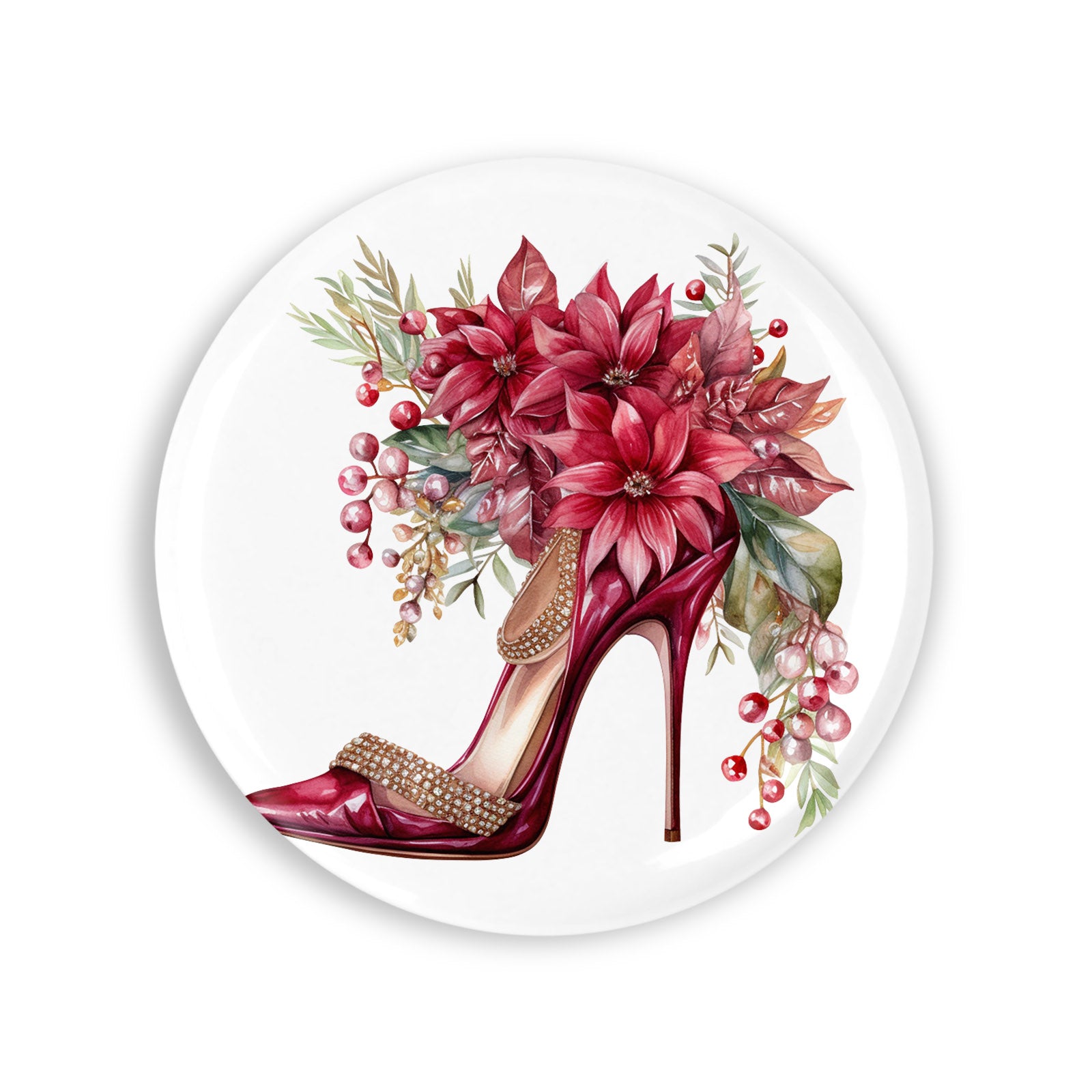 Set 4 insigne, Pantofi cu toc pentru craciun Mia, NO1281, Metal, 44 mm, Multicolor