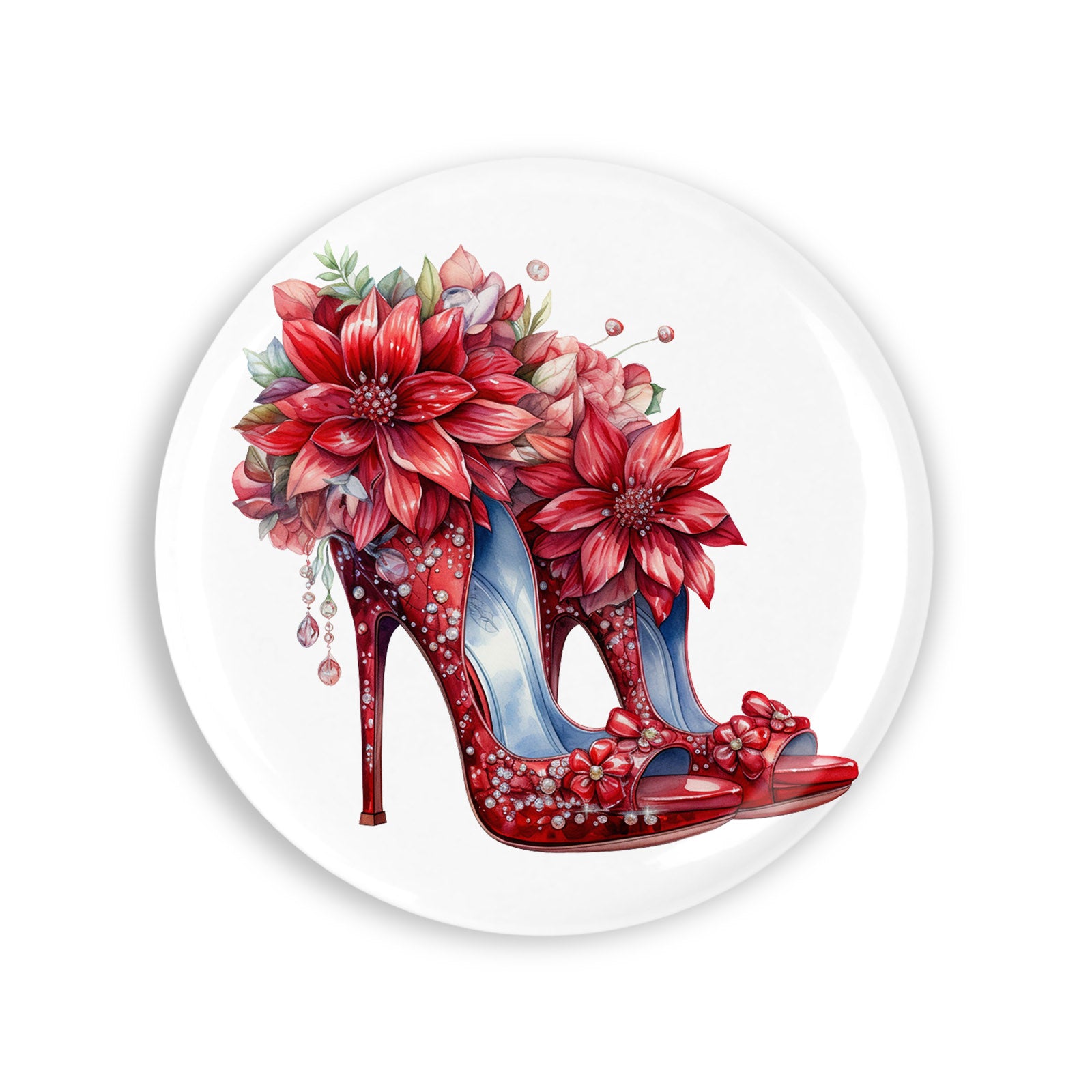 Set 4 insigne, Pantofi cu toc pentru craciun Olivia, NO2155, Metal, 44 mm, Multicolor