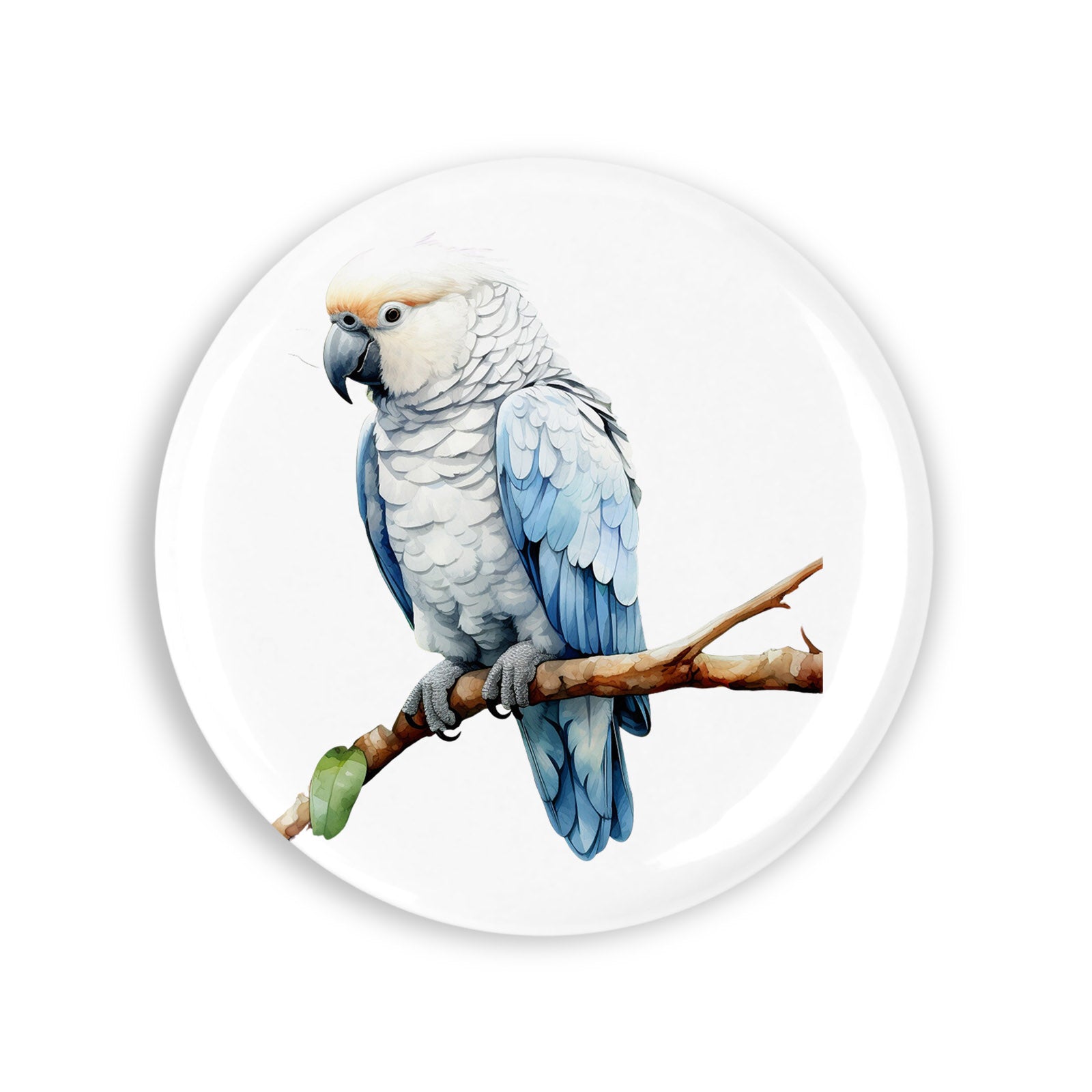Set 4 insigne, Papagal alb pe creanga, NO4804, Metal, 44 mm, Multicolor