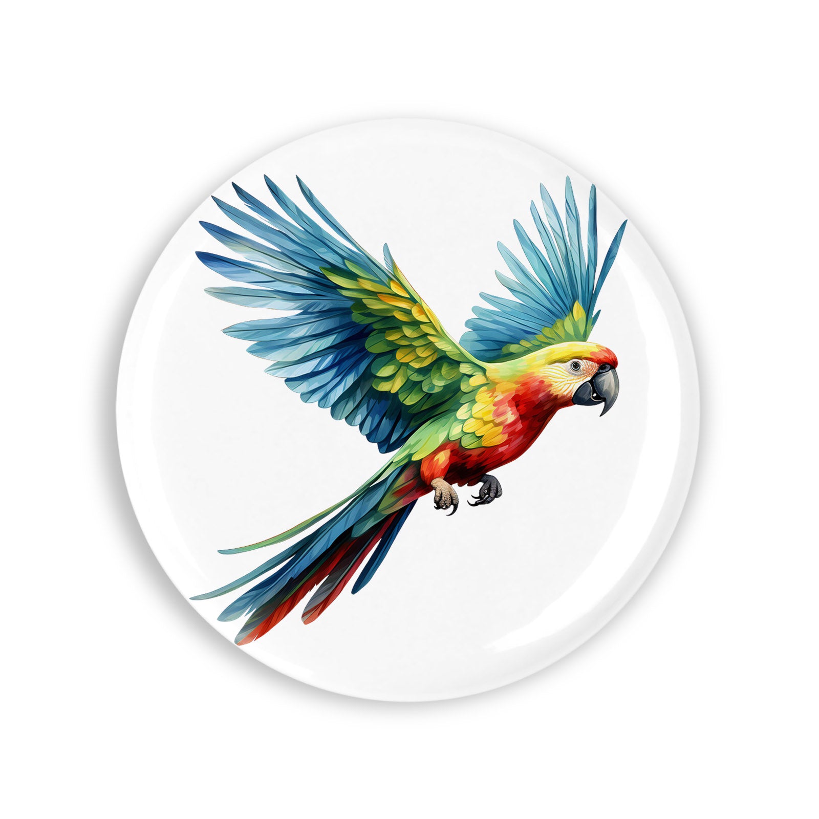 Set 4 insigne, Papagal colorat in zbor, NO3289, Metal, 44 mm, Multicolor