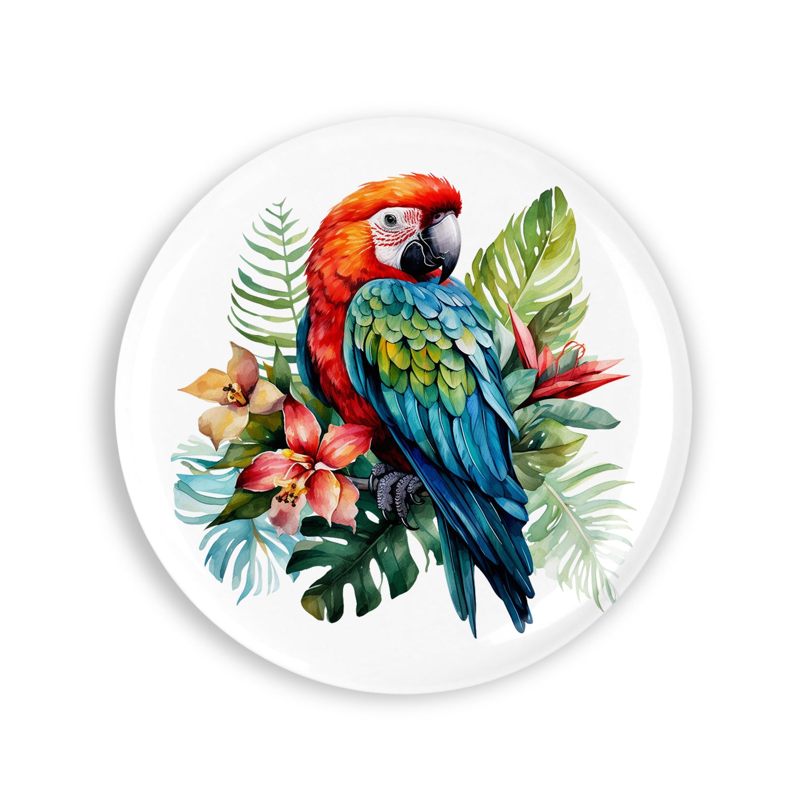Set 4 insigne, Papagal colorat si flori exotice, NO352, Metal, 44 mm, Multicolor
