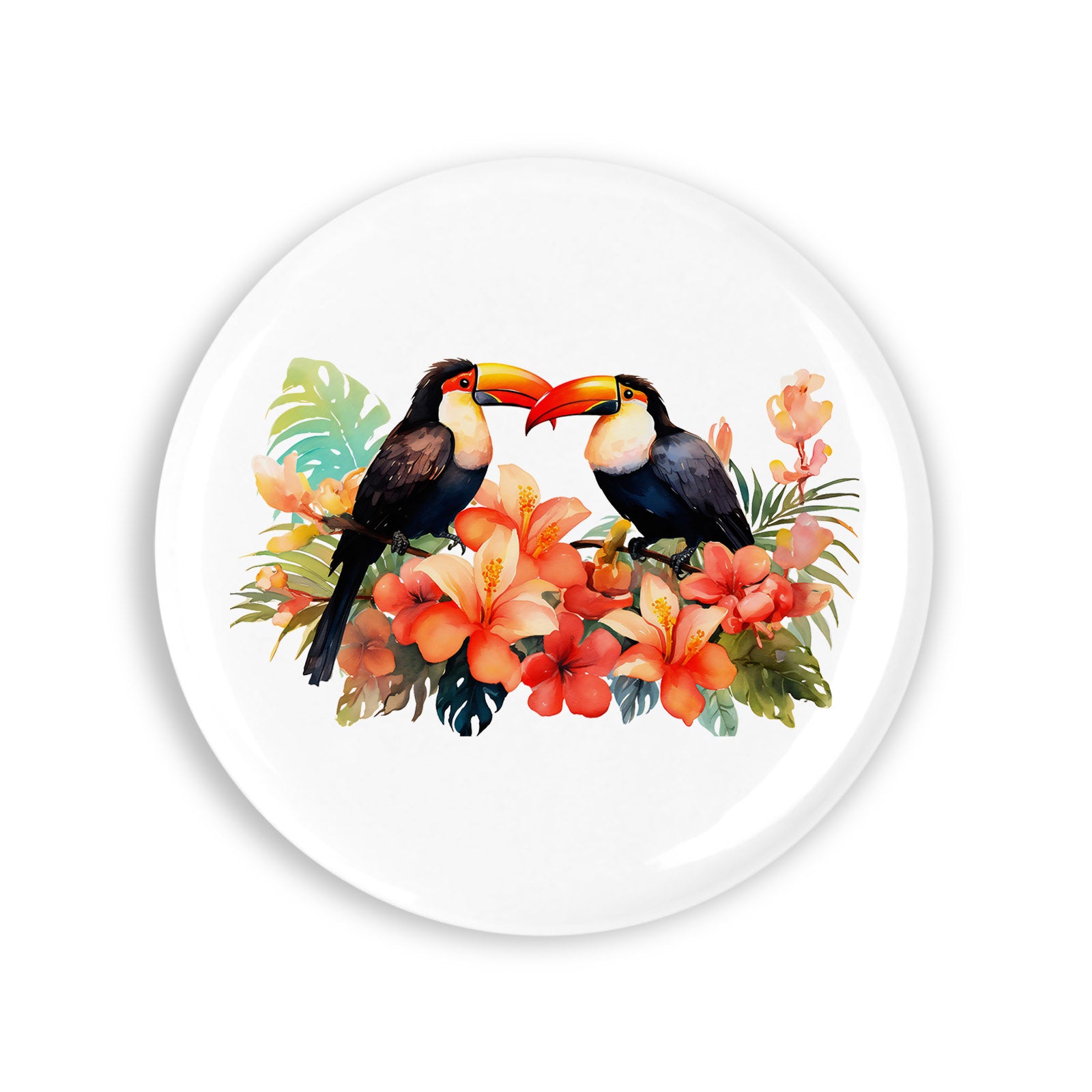 Set 4 insigne, Papagali Tucan se saruta, NO4470, Metal, 44 mm, Multicolor