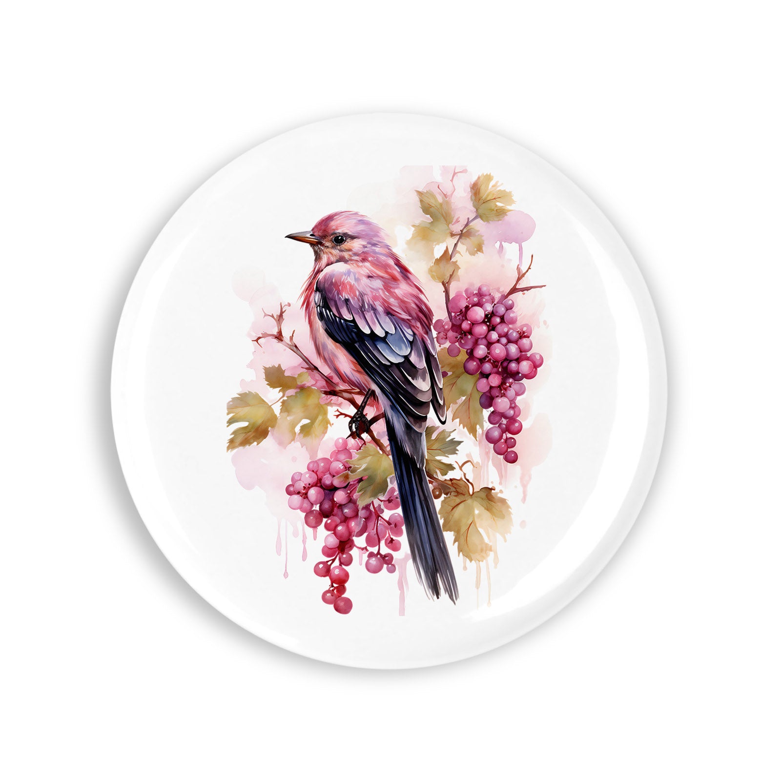Set 4 insigne, Pasare colorata in vita de vie cu struguri, NO3519, Metal, 44 mm, Multicolor