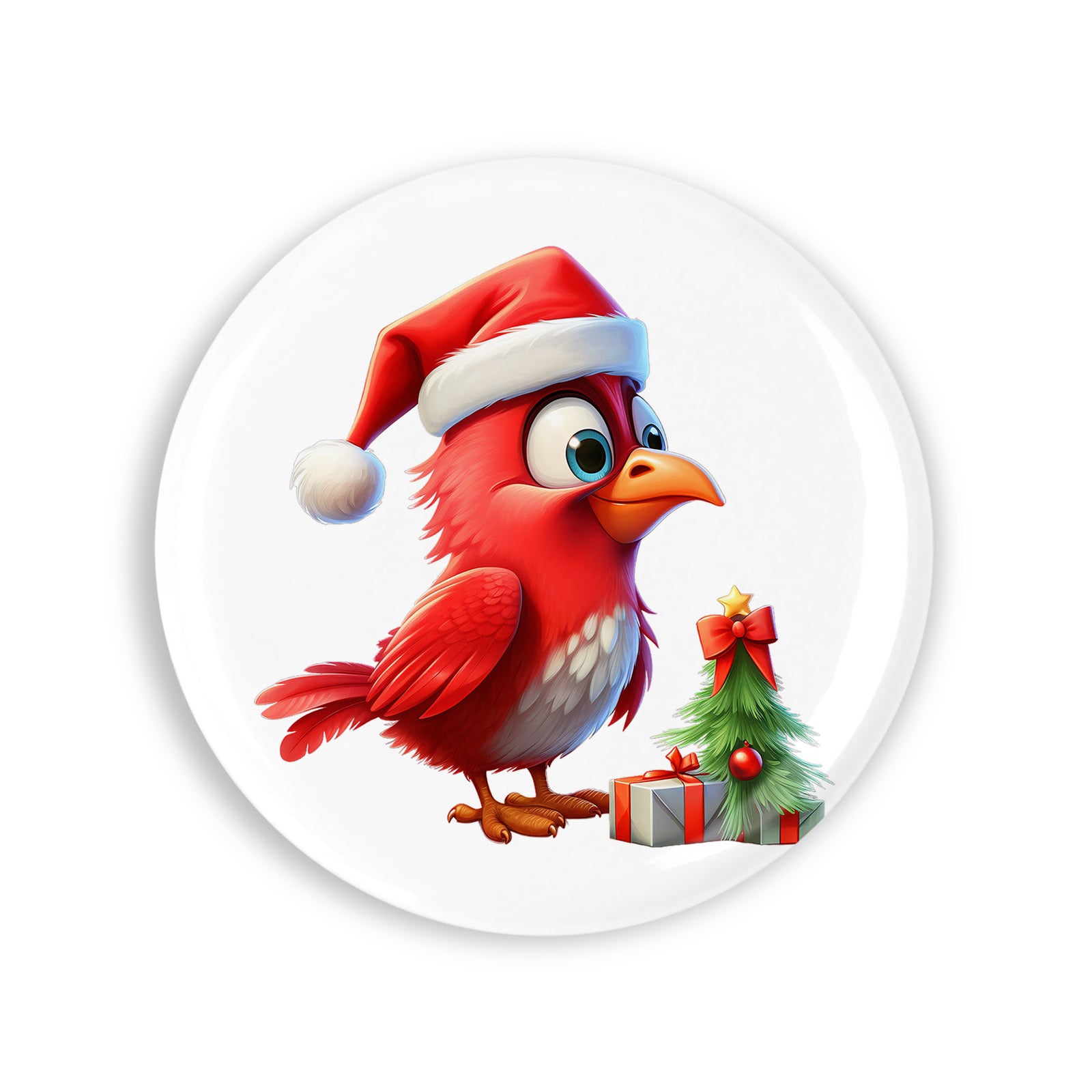 Set 4 insigne, Pasare rosie cu caciula de craciun, NO2284, Metal, 44 mm, Multicolor