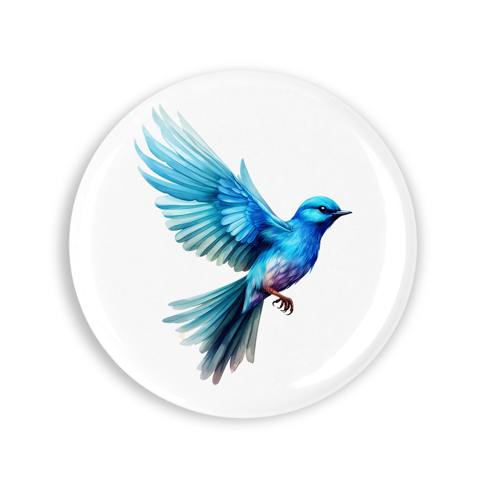 Set 4 insigne, Pasarea albastra in zbor, NO617, Metal, 44 mm, Multicolor