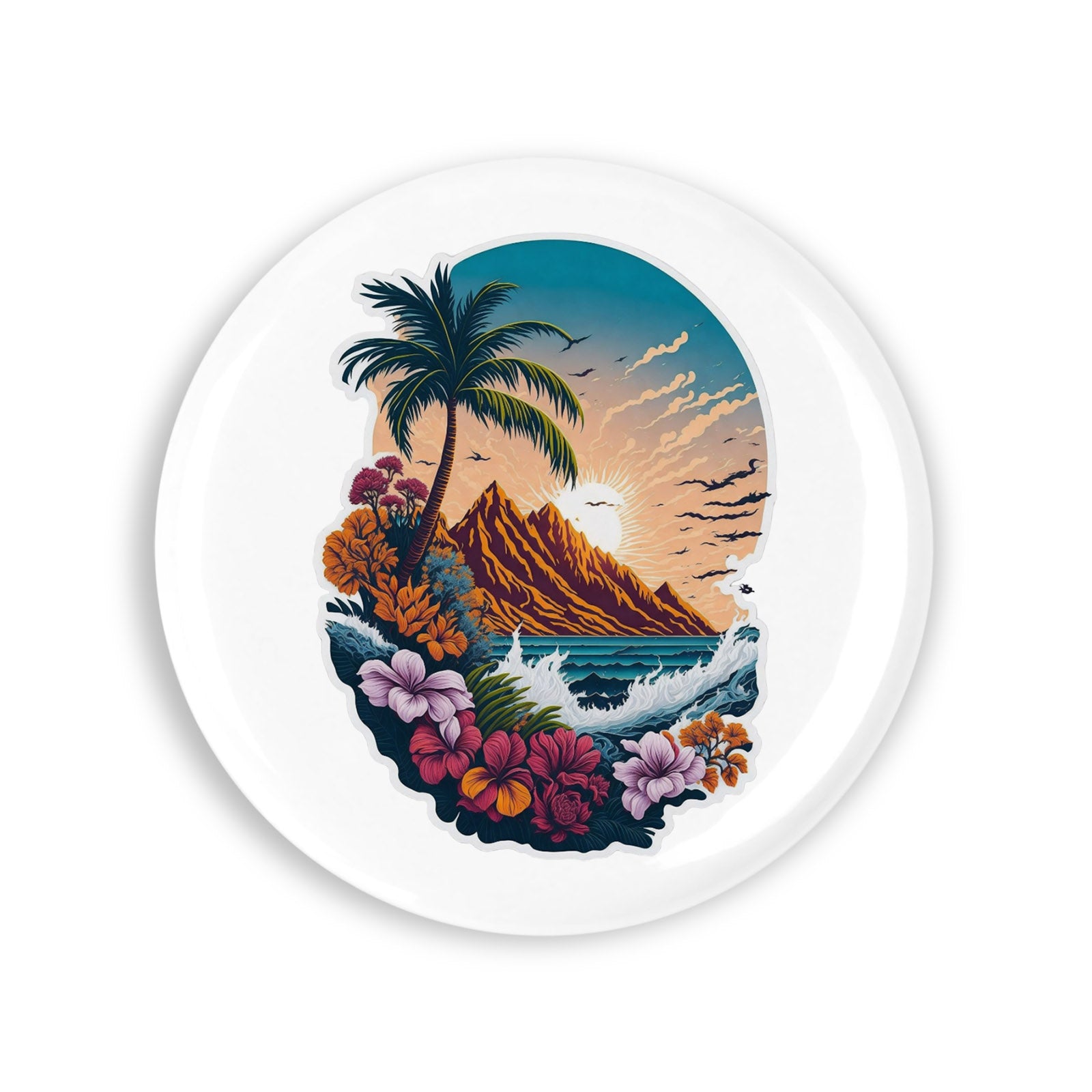 Set 4 insigne, Peisaj cu palmieri, NO6731, Metal, 44 mm, Multicolor