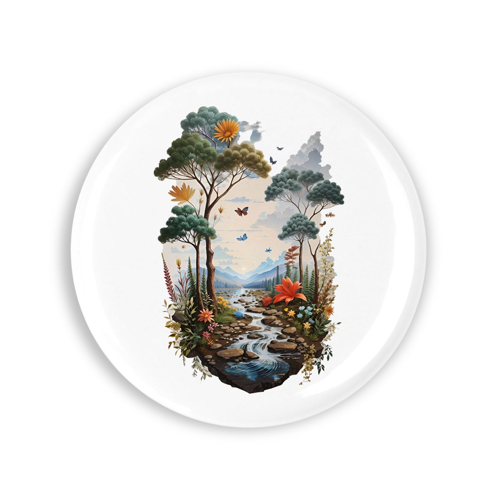 Set 4 insigne, Peisaj pe rau, NO6967, Metal, 44 mm, Multicolor