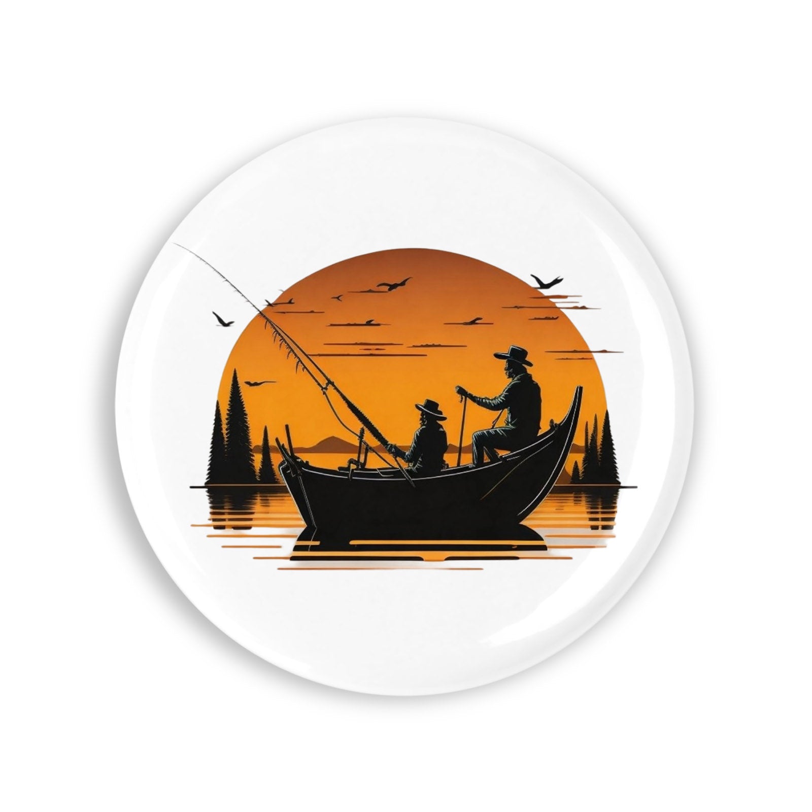 Set 4 insigne, Pescari in barca, NO7472, Metal, 44 mm, Multicolor