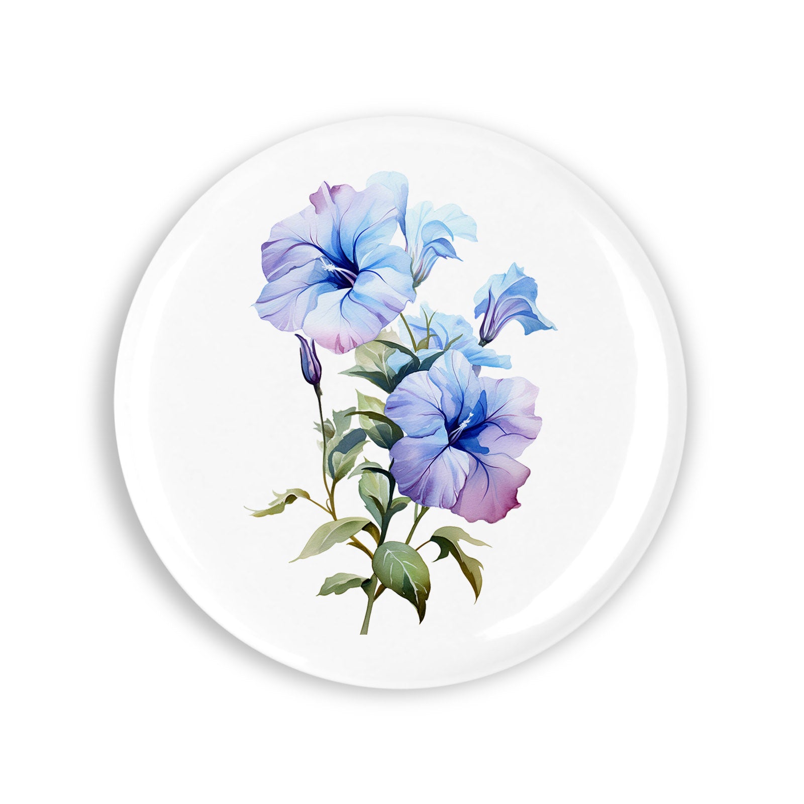 Set 4 insigne, Petunii albastre cu frunze, NO4347, Metal, 44 mm, Multicolor