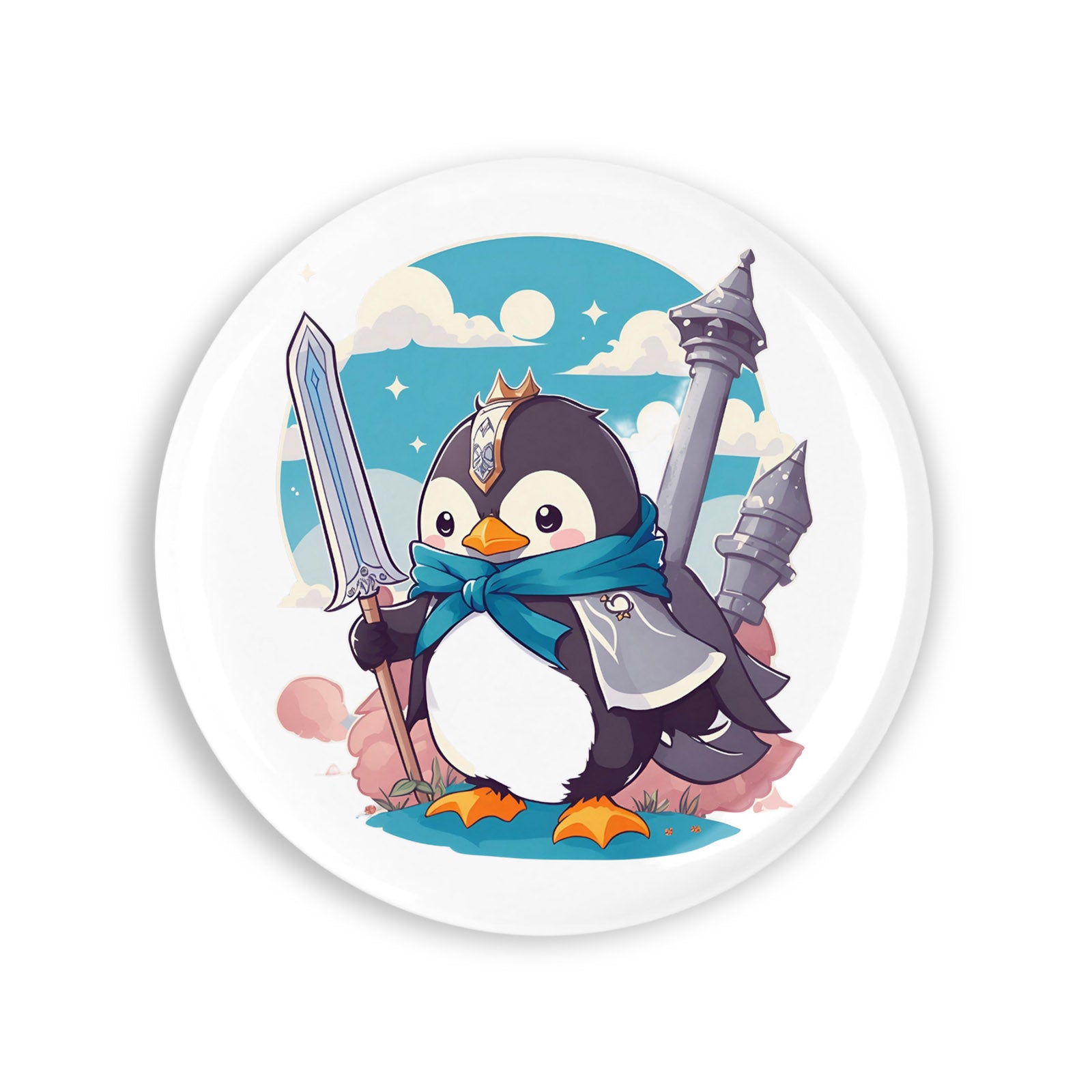 Set 4 insigne, Pinguinul cu sabie, NO6643, Metal, 44 mm, Multicolor