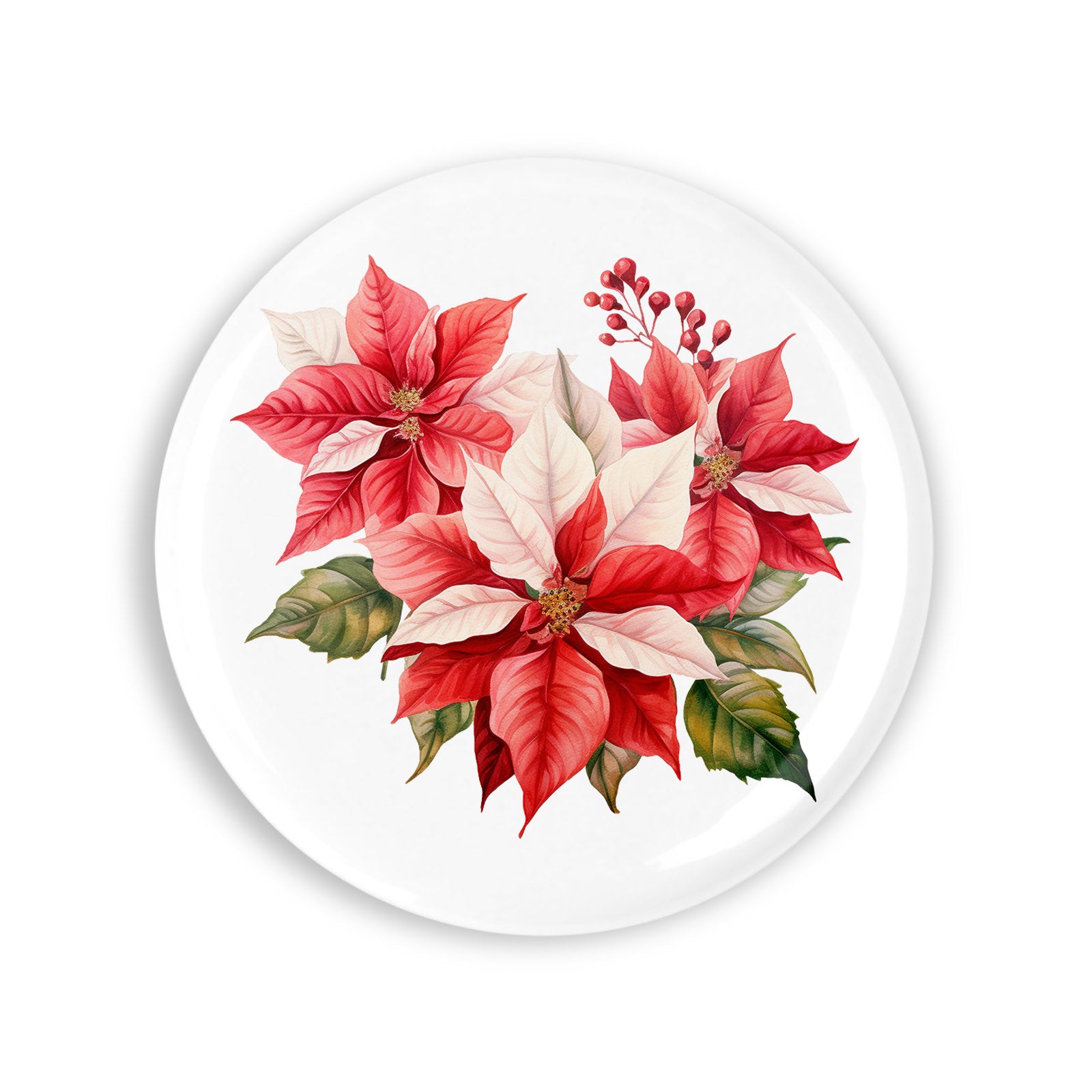 Set 4 insigne, Pionsettia floare de craciun, NO1333, Metal, 44 mm, Multicolor
