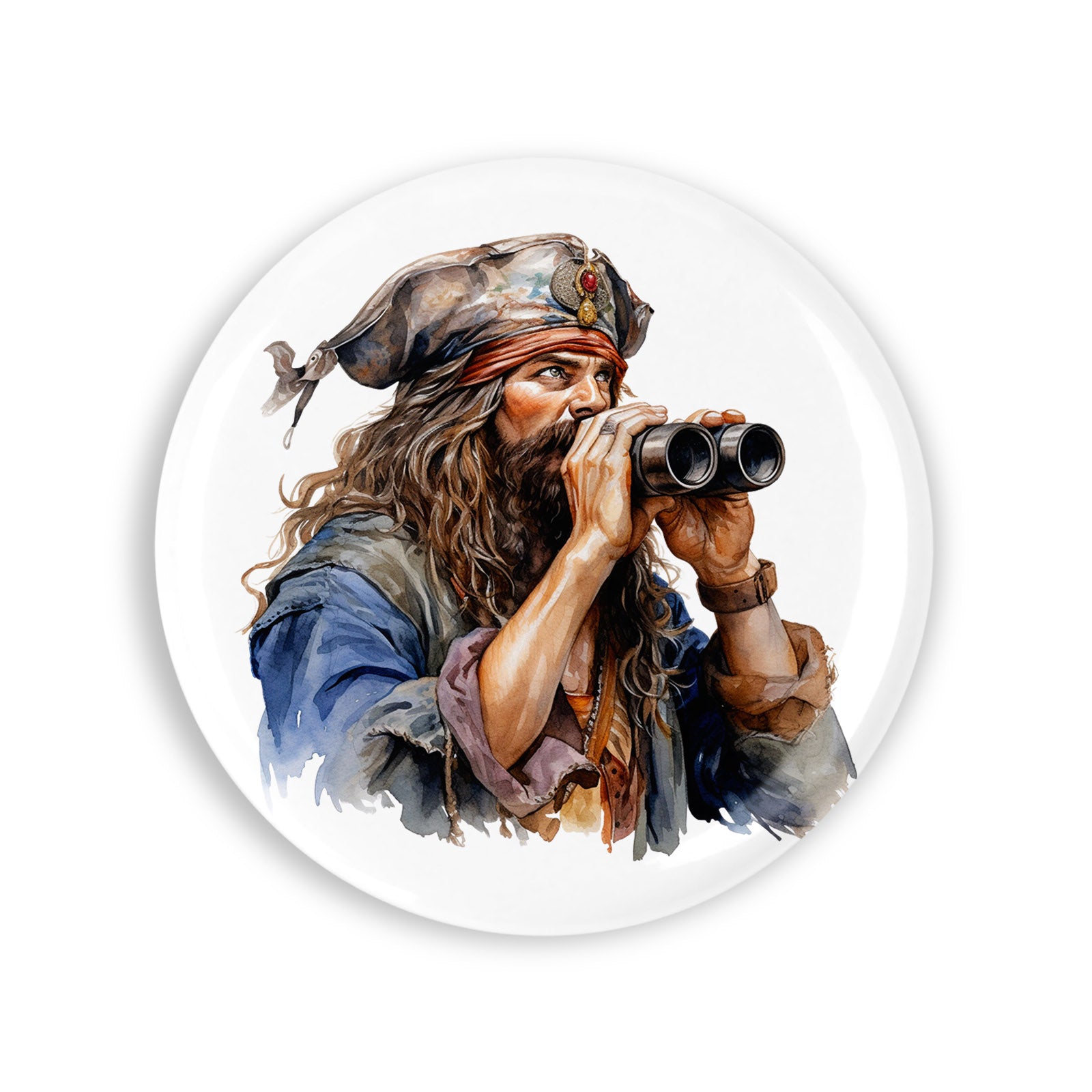 Set 4 insigne, Piratul cu binoclu, NO2295, Metal, 44 mm, Multicolor