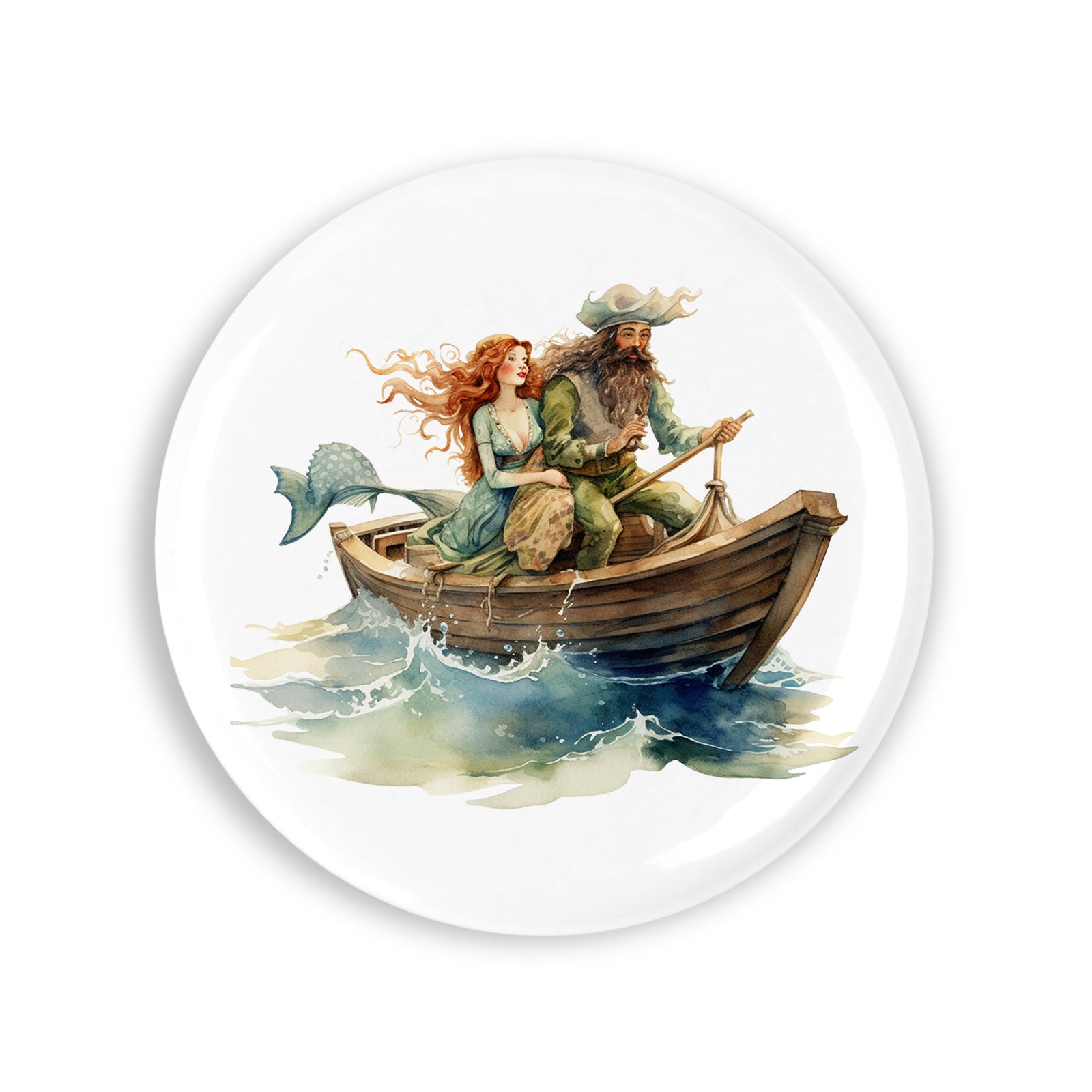 Set 4 insigne, Piratul si sirena, NO1199, Metal, 44 mm, Multicolor