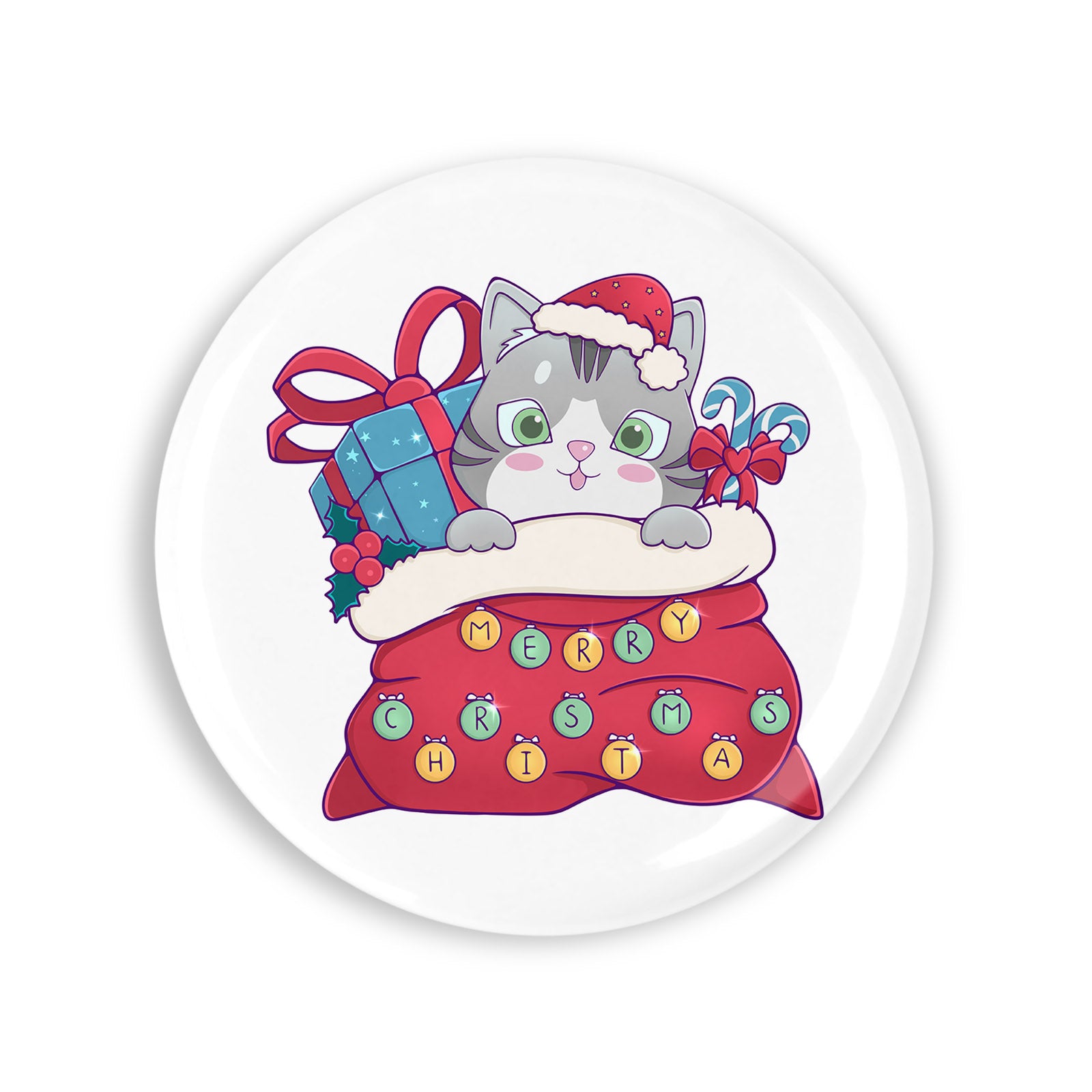 Set 4 insigne, Pisca in sacul de craciun, NO2748, Metal, 44 mm, Multicolor