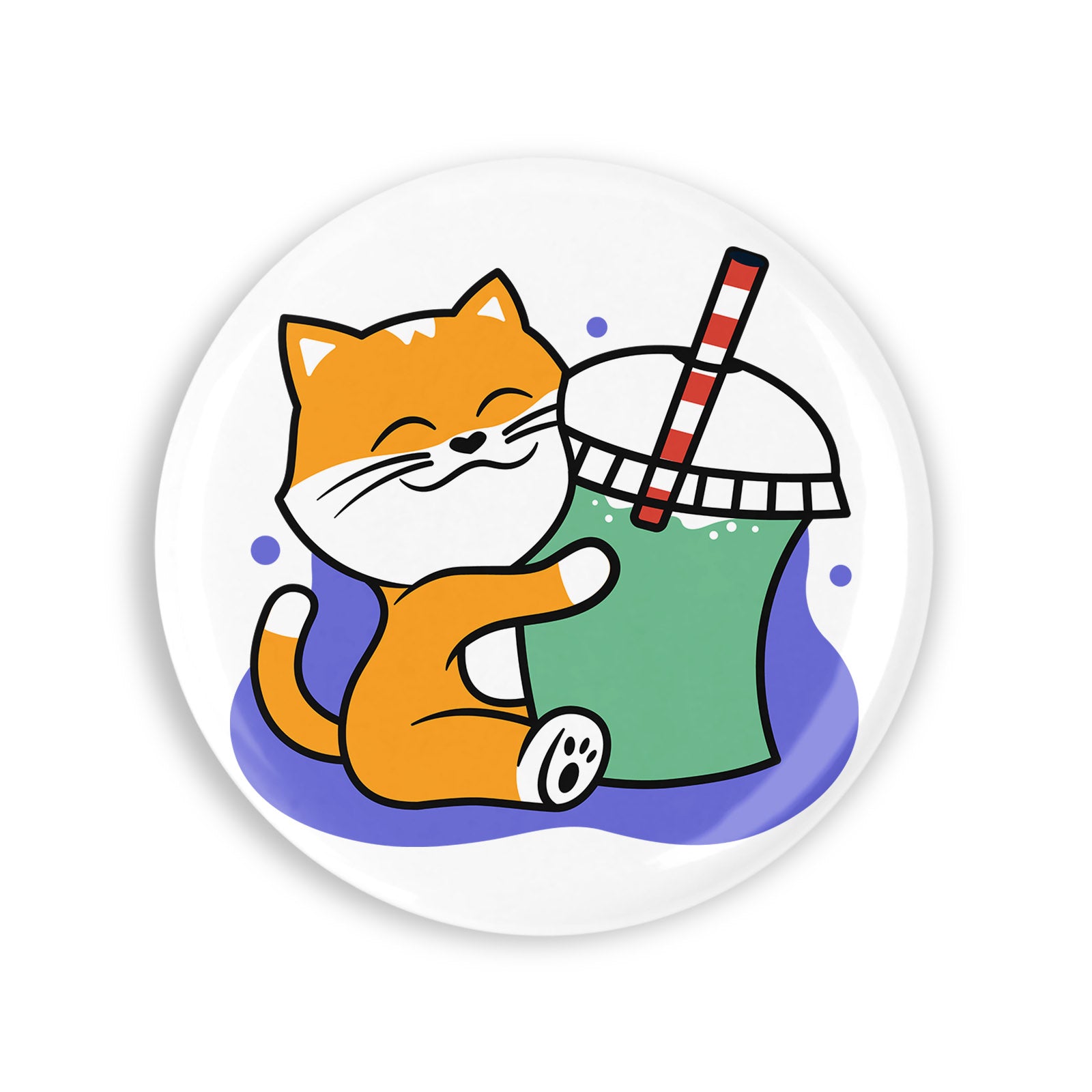 Set 4 insigne, Pisica adora sucul, NO5829, Metal, 44 mm, Multicolor