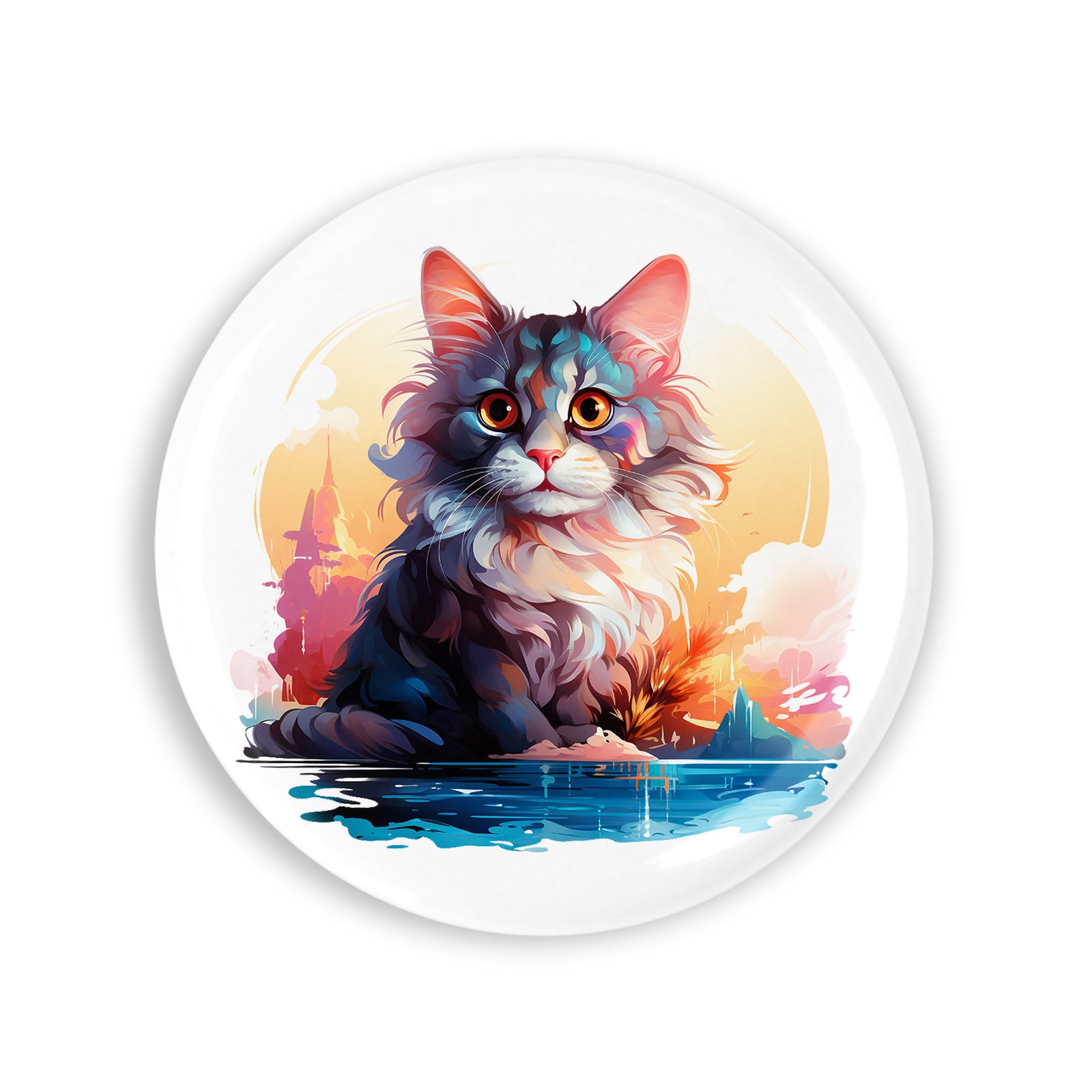 Set 4 insigne, Pisica colorata, NO548, Metal, 44 mm, Multicolor