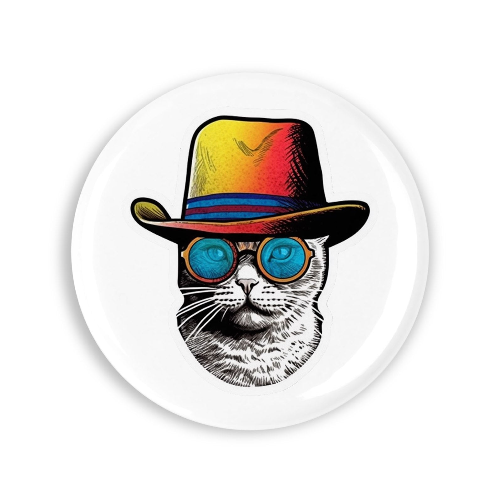 Set 4 insigne, Pisica cool cu palarie, NO11211, Metal, 44 mm, Multicolor