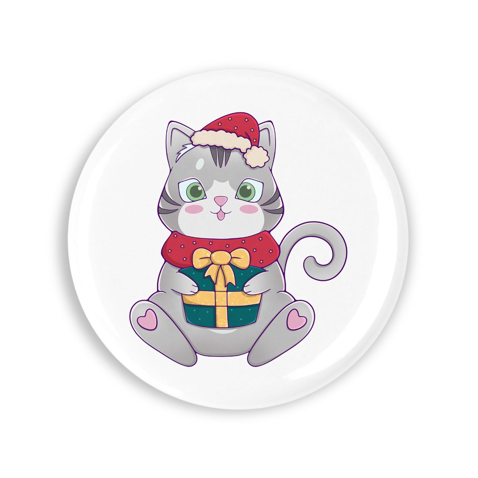 Set 4 insigne, Pisica Craciunita cu cadou, NO11213, Metal, 44 mm, Multicolor