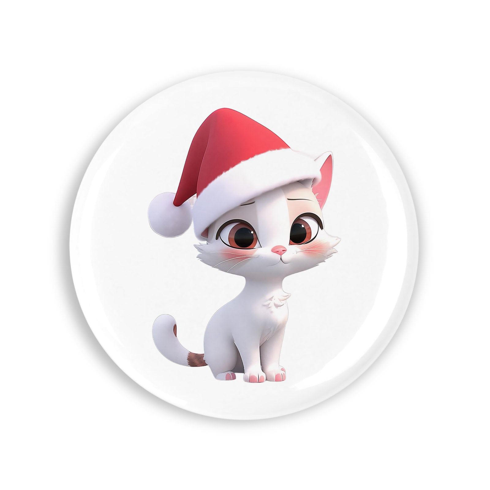 Set 4 insigne, Pisica cu caciula de craciun, NO736, Metal, 44 mm, Multicolor