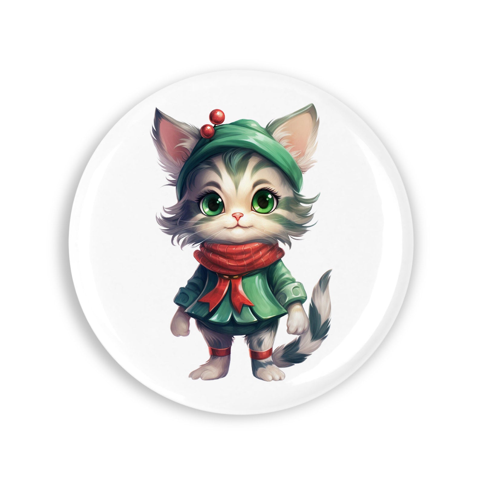Set 4 insigne, Pisica cu caciula verde, NO5970, Metal, 44 mm, Multicolor