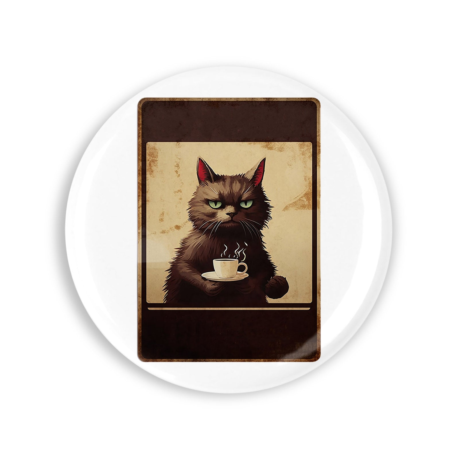 Set 4 insigne, Pisica cu cafeaua firbinte, NO5371, Metal, 44 mm, Multicolor