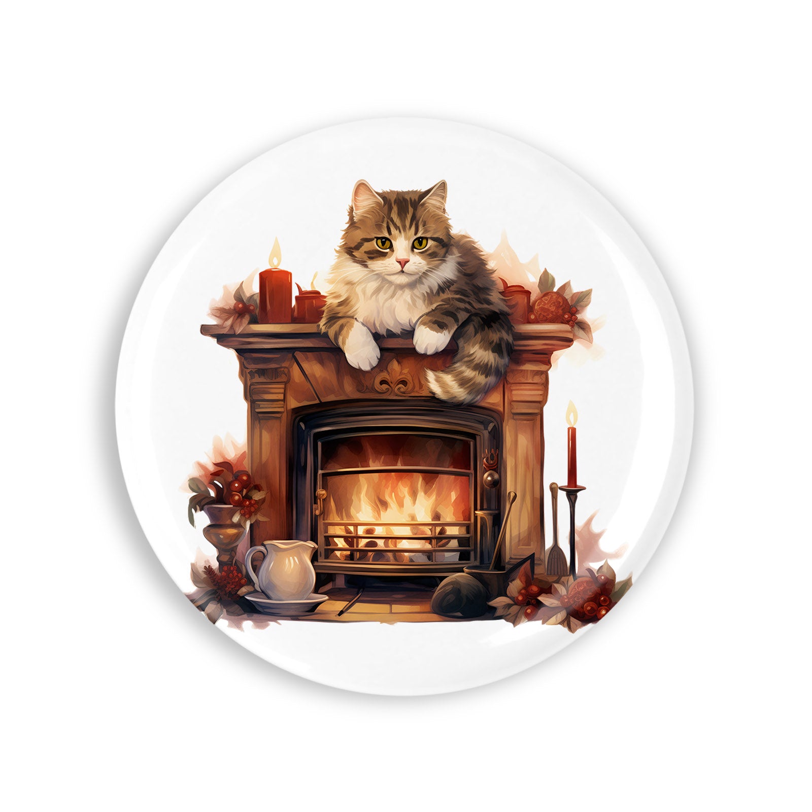 Set 4 insigne, Pisica cu coada stufoasa pe semineu, NO5189, Metal, 44 mm, Multicolor