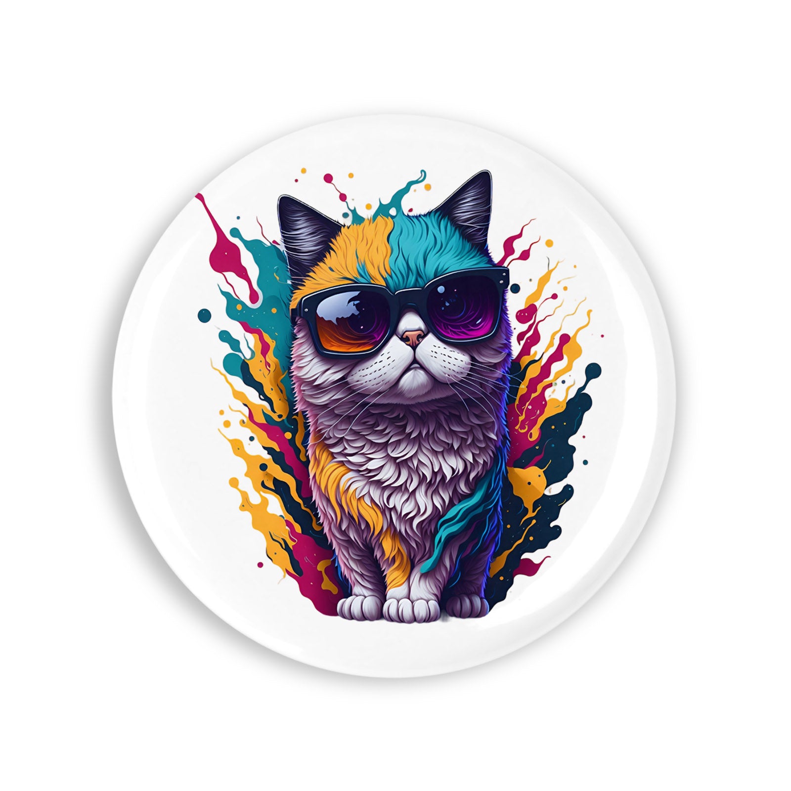 Set 4 insigne, Pisica cu ochelari de soare, NO6740, Metal, 44 mm, Multicolor