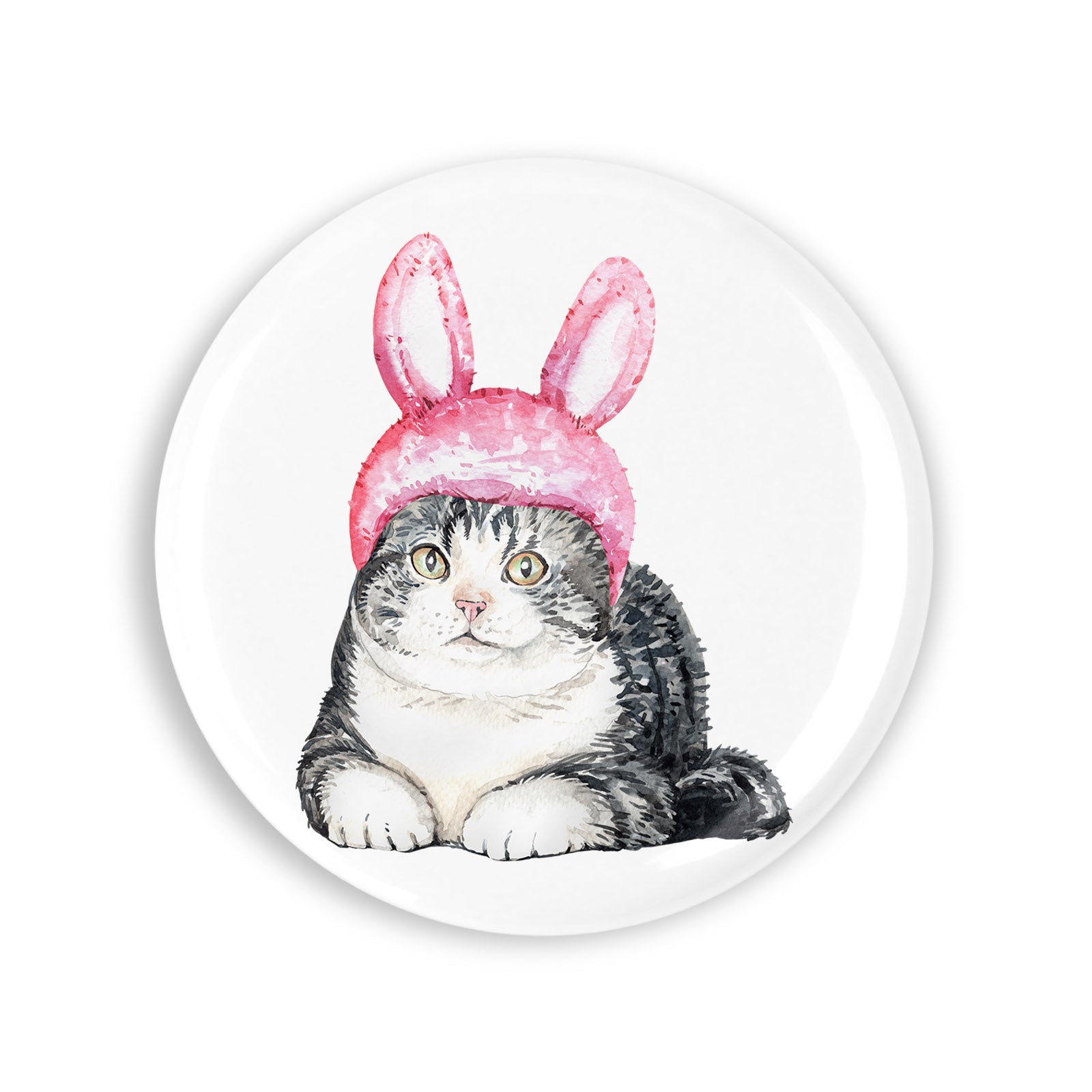 Set 4 insigne, Pisica cu urechi de iepure sta pe jos, NO11232, Metal, 44 mm, Multicolor