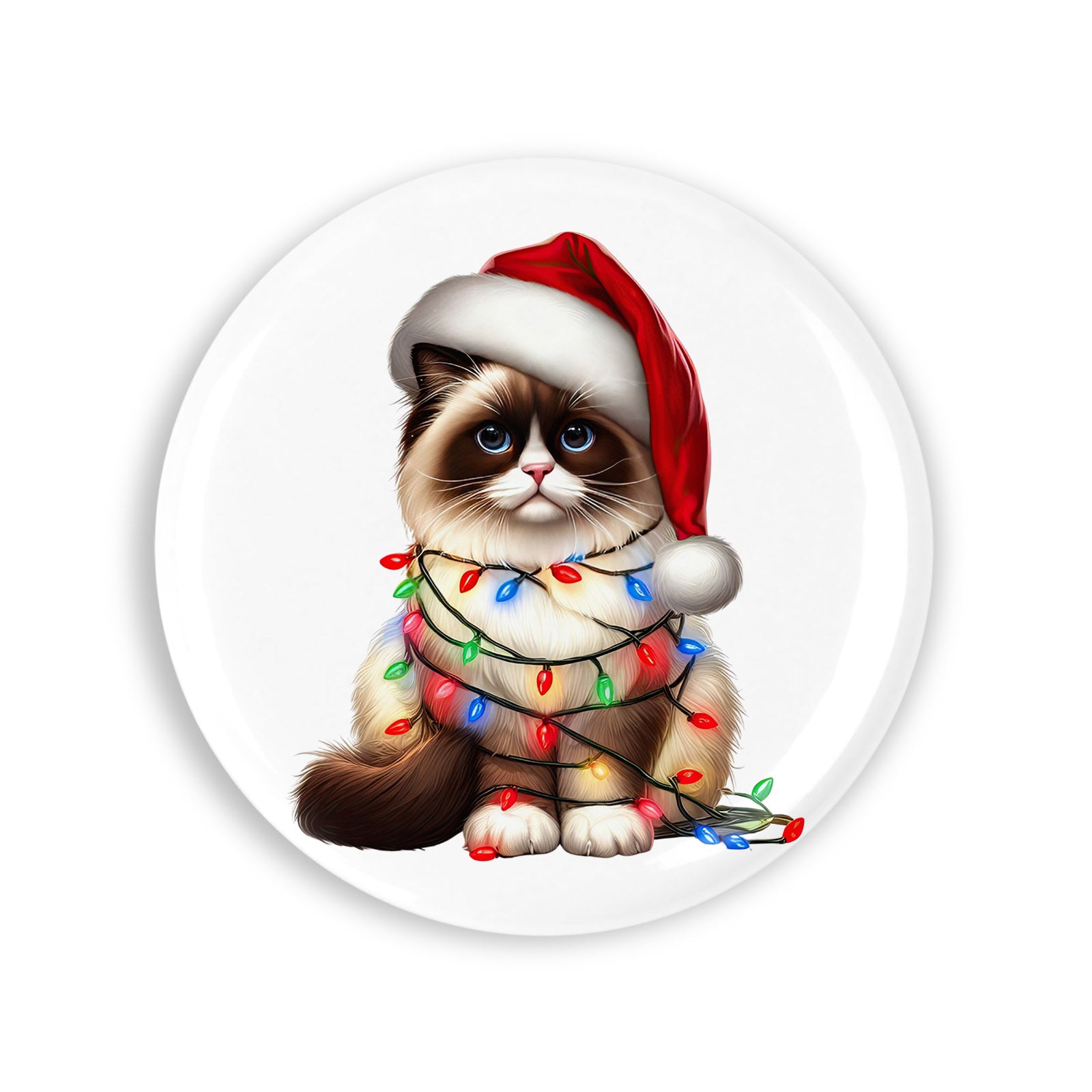 Set 4 insigne, Pisica de craciun Birmaneza, NO6027, Metal, 44 mm, Multicolor