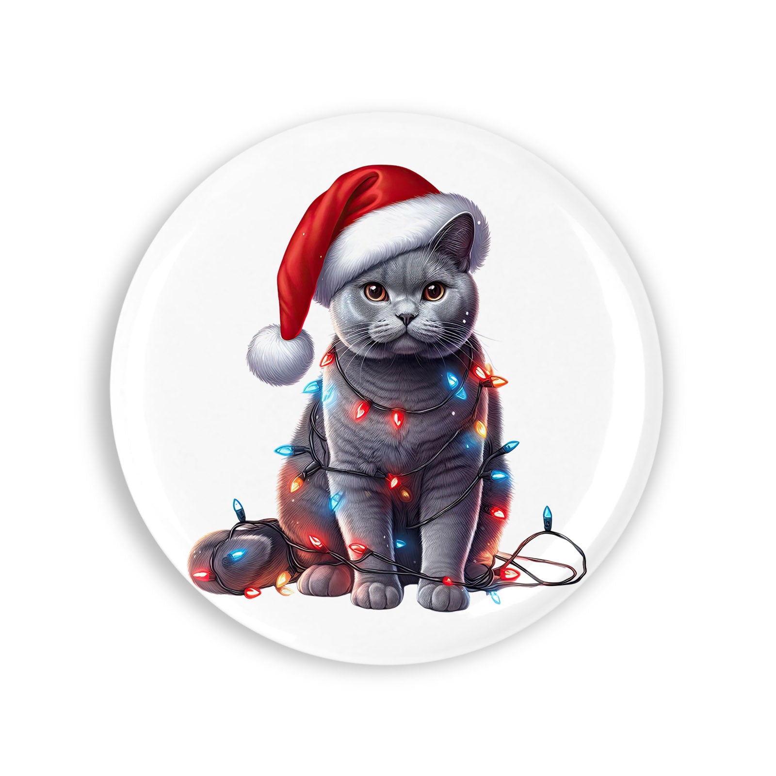 Set 4 insigne, Pisica de craciun Chartreux, NO244, Metal, 44 mm, Multicolor