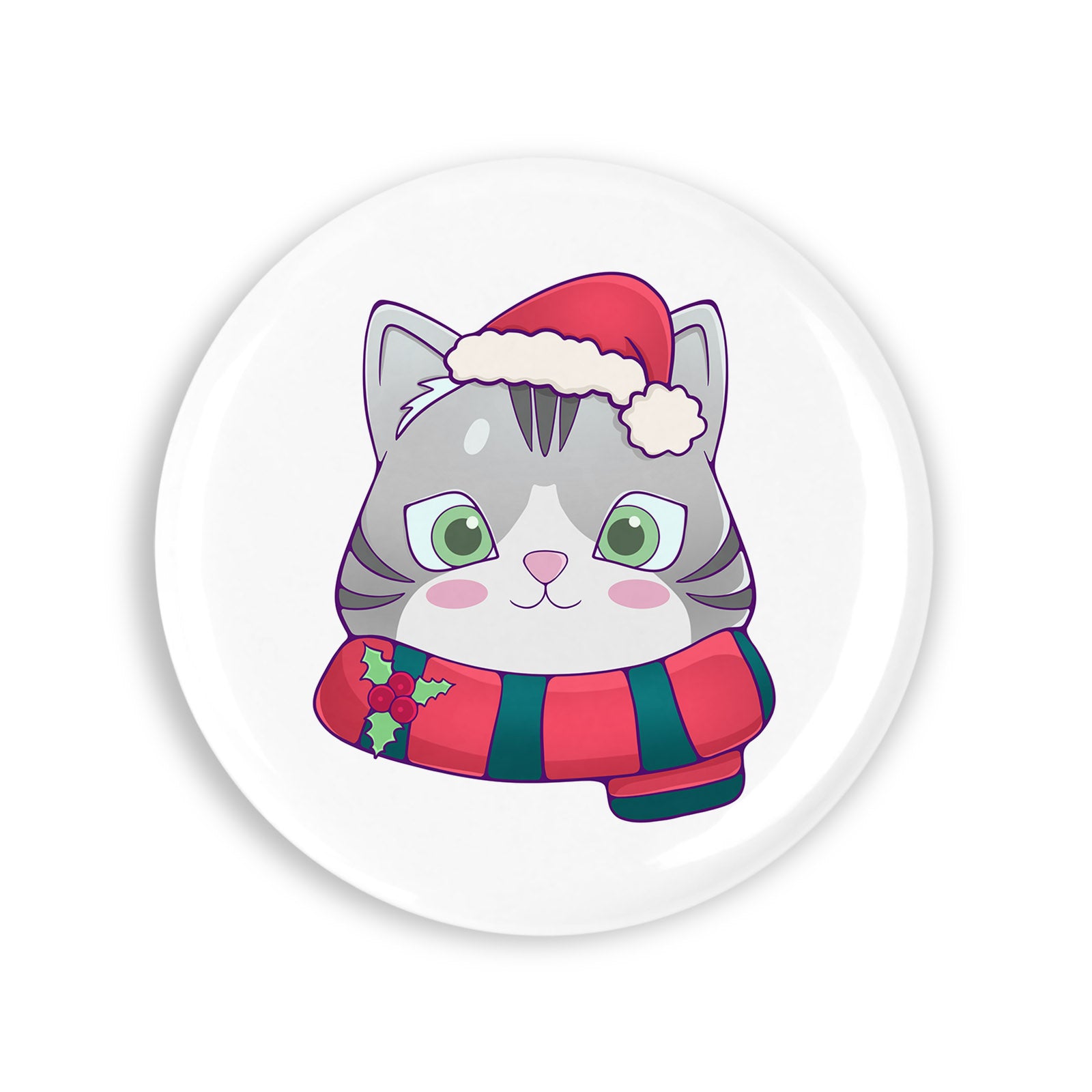 Set 4 insigne, Pisica de craciun cu fular, NO5575, Metal, 44 mm, Multicolor